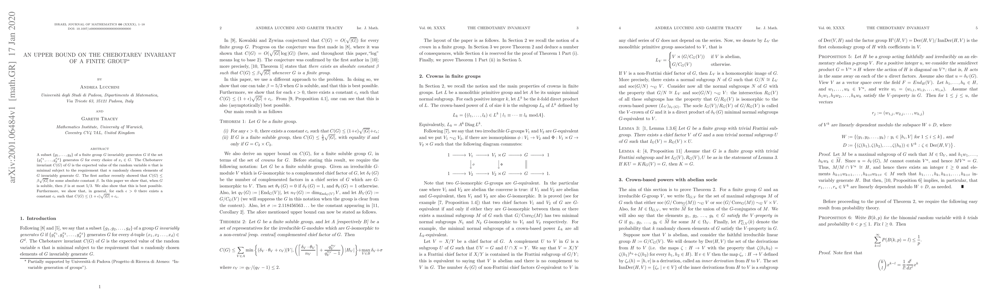 A research paper establishes an upper bound on the Chebotarev invariant of a finite group, showing that for soluble groups, the bound is at most $5/3$, while for general groups, it's $(1+rac{ ext{any } ext{epsilon}}{ ext{1}}) ext{sqrt}(|G|)+c_{ ext{epsilon}}$.