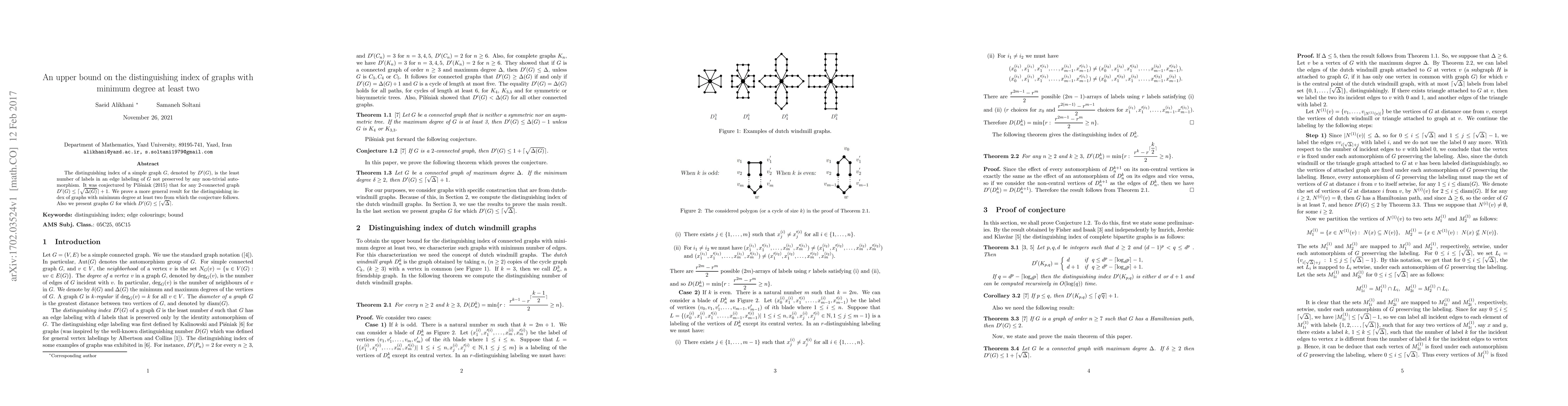 This paper proves an upper bound for the distinguishing index $D'(G)$ of graphs with minimum degree at least two, showing that $D'(G) \leq \lceil \sqrt{\Delta (G)}\rceil +1$, which generalizes and confirms a conjecture by Pil\'sniak for 2-connected graphs. It also provides specific examples where $D'(G) \leq \lceil \sqrt{\Delta }\rceil$.