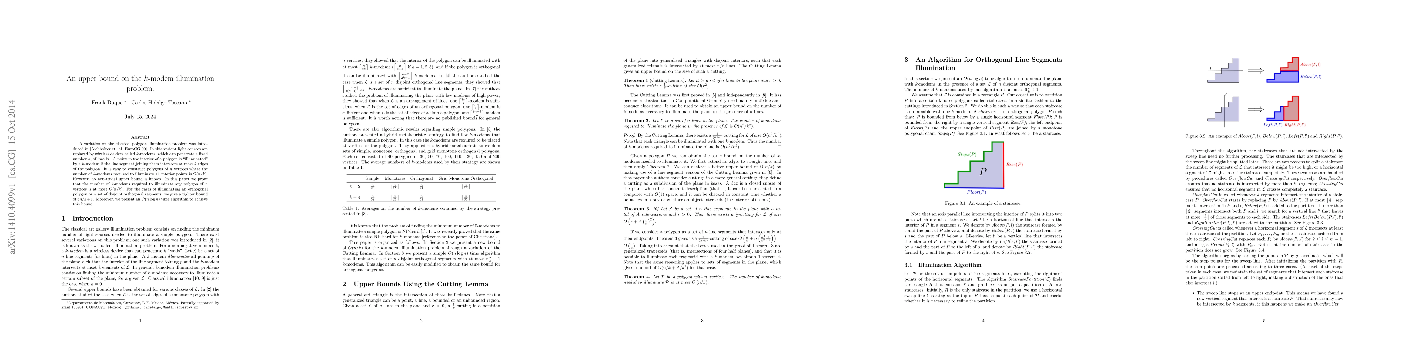 Researchers prove an upper bound of O(n/k) k-modems needed to illuminate a polygon, improving upon existing Omega(n/k) lower bounds and providing efficient algorithm for achieving this bound in O(n log n) time.