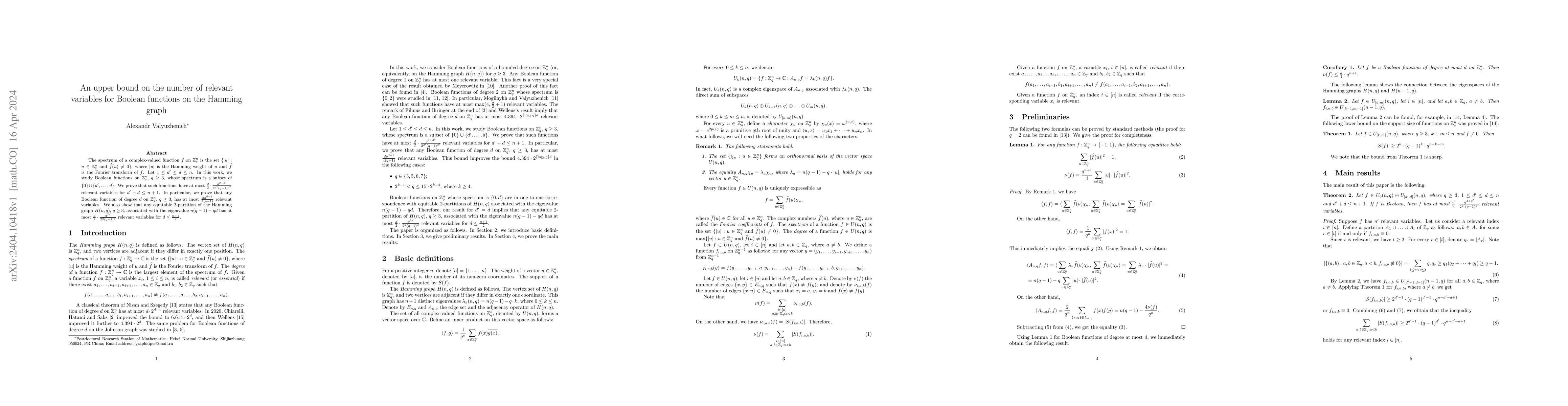The spectrum of a complex-valued function $f$ on $\mathbb{Z}_{q}^n$ is the set $\{|u|:u\in \mathbb{Z}_q^n~\mathrm{and}~\widehat{f}(u)\neq 0\}$, where $|u|$ is the Hamming weight of $u$ and $\widehat{f}$ is the Fourier transform of $f$. Let $1\leq d'\leq d\leq n$. In this work, we study Boolean functions on $\mathbb{Z}_{q}^n$, $q\geq 3$, whose spectrum is a subset of $\{0\}\cup \{d',\ldots,d\}$. We prove that such functions have at most $\frac{d}{2}\cdot \frac{q^{d+d'}}{2^{d'}(q-1)^{d'}}$ relevant variables for $d'+d\leq n+1$. In particular, we prove that any Boolean function of degree $d$ on $\mathbb{Z}_{q}^n$, $q\geq 3$, has at most $\frac{dq^{d+1}}{4(q-1)}$ relevant variables. We also show that any equitable 2-partition of the Hamming graph $H(n,q)$, $q\geq 3$, associated with the eigenvalue $n(q-1)-qd$ has at most $\frac{d}{2}\cdot \frac{q^{2d}}{2^d(q-1)^{d}}$ relevant variables for $d\leq \frac{n+1}{2}$.