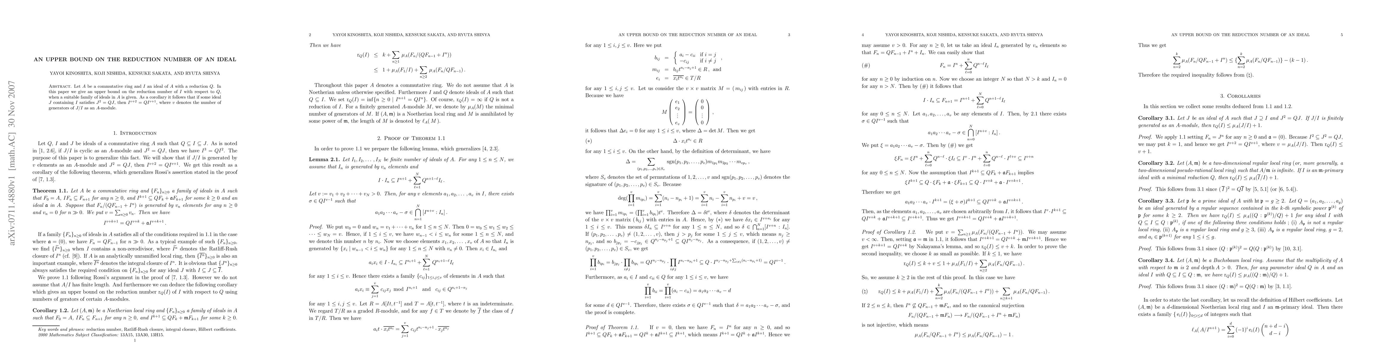 Let A be a commutative ring and I an ideal of A with a reduction Q. In this paper we give an upper bound on the reduction number of I with respect to Q, when a suitable family of ideals in A is given. As a corollary it follows that if some ideal J containing I satisfies J^2 = QJ, then I^{v + 2} = QI^{v + 1}, where v denotes the number of generators of J / I as an A-module.