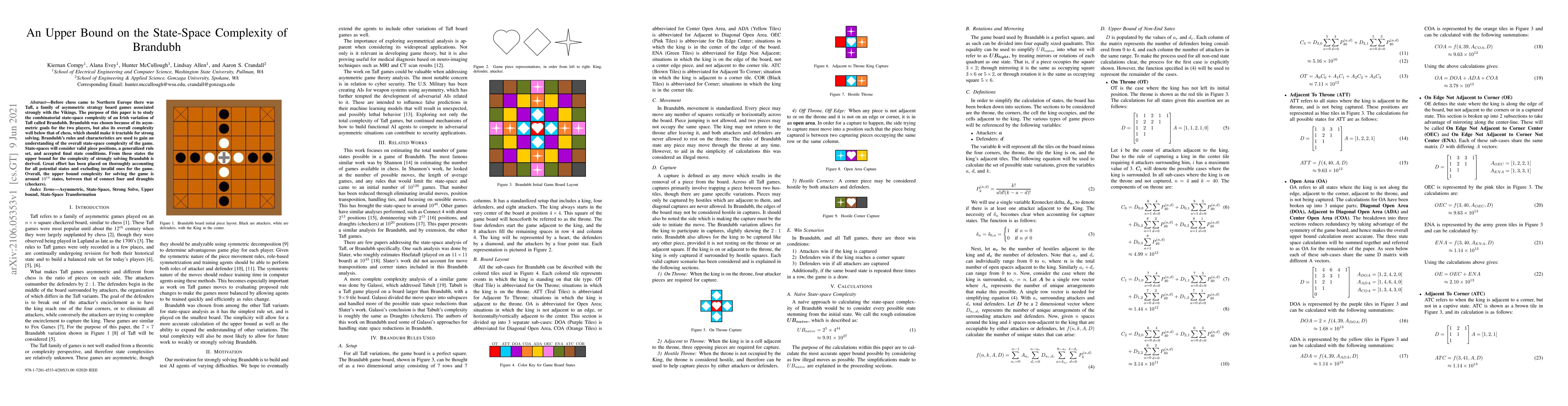 Before chess came to Northern Europe there was Tafl, a family of asymmetric strategy board games associated strongly with the Vikings. The purpose of this paper is to study the combinatorial state-space complexity of an Irish variation of Tafl called Brandubh. Brandubh was chosen because of its asymmetric goals for the two players, but also its overall complexity well below that of chess, which should make it tractable for strong solving. Brandubh's rules and characteristics are used to gain an understanding of the overall state-space complexity of the game. State-spaces will consider valid piece positions, a generalized rule set, and accepted final state conditions. From these states the upper bound for the complexity of strongly solving Brandubh is derived. Great effort has been placed on thoroughly accounting for all potential states and excluding invalid ones for the game. Overall, the upper bound complexity for solving the game is around 10^14 states, between that of connect four and draughts (checkers).