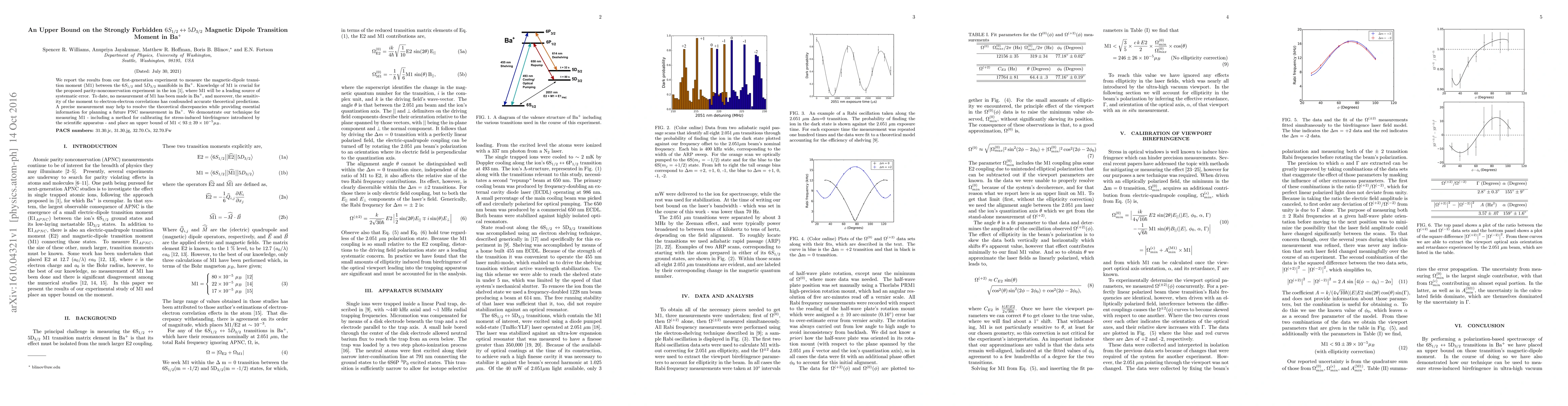 We report the results from our first-generation experiment to measure the magnetic-dipole transition moment (M1) between the $6S_{1/2}$ and $5D_{3/2}$ manifolds in Ba$^{+}$. Knowledge of M1 is crucial for the proposed parity-nonconservation experiment in the ion \cite{Fortson93}, where M1 will be a leading source of systematic error. To date, no measurement of M1 has been made in Ba$^{+}$, and moreover, the sensitivity of the moment to electron-electron correlations has confounded accurate theoretical predictions. A precise measurement may help to resolve the theoretical discrepancies while providing essential information for planning a future PNC measurement in Ba$^{+}$. We demonstrate our technique for measuring M1 - including a method for calibrating for stress-induced birefringence introduced by the scientific apparatus - and place an upper bound of $\mathrm{M1} < 93 \pm 39 \times 10^{-5} \mu_{B}$.
