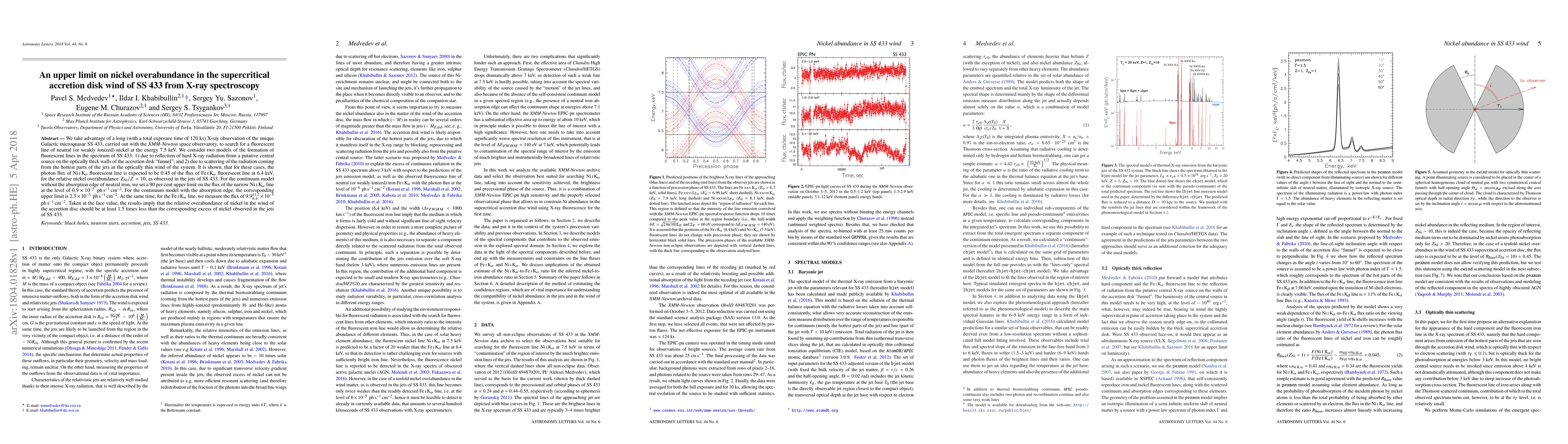 Researchers used X-ray spectroscopy to search for nickel in the wind of SS 433, a Galactic microquasar, and set an upper limit on its overabundance, finding it to be at least 1.5 times less than observed in jets.