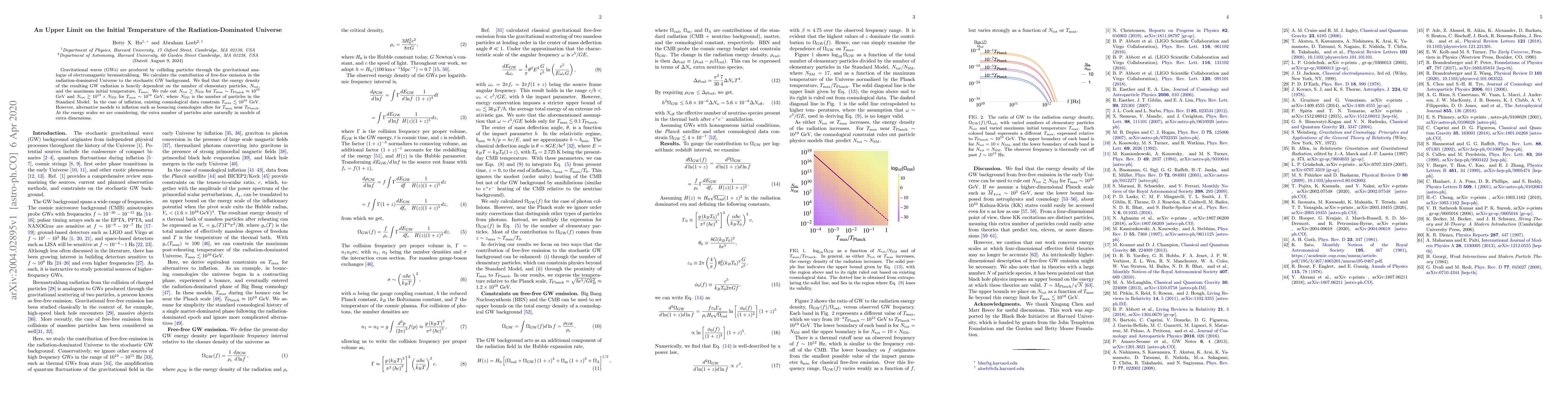 Gravitational waves (GWs) are produced by colliding particles through the gravitational analogue of electromagnetic bremsstrahlung. We calculate the contribution of free-free emission in the radiation-dominated Universe to the stochastic GW background. We find that the energy density of the resulting GW radiation is heavily dependent on the number of elementary particles, $N_{\mathrm{tot}}$, and the maximum initial temperature, $T_{\mathrm{max}}$. We rule out $N_{\mathrm{tot}}\gtrsim N_{\mathrm{SM}}$ for $T_{\mathrm{max}}\sim T_{\mathrm{Planck}}\approx10^{19}$ GeV and $N_{\mathrm{tot}}\gtrsim10^{13}\times N_{\mathrm{SM}}$ for $T_{\mathrm{max}}\sim10^{16}$ GeV, where $N_{\mathrm{SM}}$ is the number of particles in the Standard Model. In the case of inflation, existing cosmological data constrain $T_{\mathrm{max}}\lesssim10^{16}$ GeV. However, alternative models to inflation such as bouncing cosmologies allow for $T_{\mathrm{max}}$ near $T_{\mathrm{Planck}}$. At the energy scales we are considering, the extra number of particles arise naturally in models of extra dimensions.