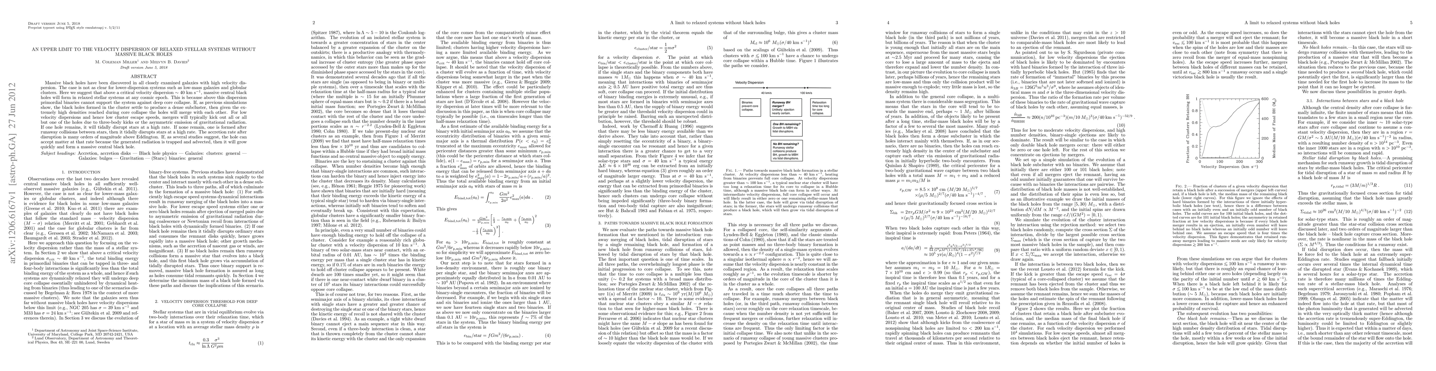 Massive black holes have been discovered in all closely examined galaxies with high velocity dispersion. The case is not as clear for lower-dispersion systems such as low-mass galaxies and globular clusters. Here we suggest that above a critical velocity dispersion of roughly 40 km/s, massive central black holes will form in relaxed stellar systems at any cosmic epoch. This is because above this dispersion primordial binaries cannot support the system against deep core collapse. If, as previous simulations show, the black holes formed in the cluster settle to produce a dense subcluster, then given the extremely high densities reached during core collapse the holes will merge with each other. For low velocity dispersions and hence low cluster escape speeds, mergers will typically kick out all or all but one of the holes due to three-body kicks or the asymmetric emission of gravitational radiation. If one hole remains, it will tidally disrupt stars at a high rate. If none remain, one is formed after runaway collisions between stars, then it tidally disrupts stars at a high rate. The accretion rate after disruption is many orders of magnitude above Eddington. If, as several studies suggest, the hole can accept matter at that rate because the generated radiation is trapped and advected, then it will grow quickly and form a massive central black hole.