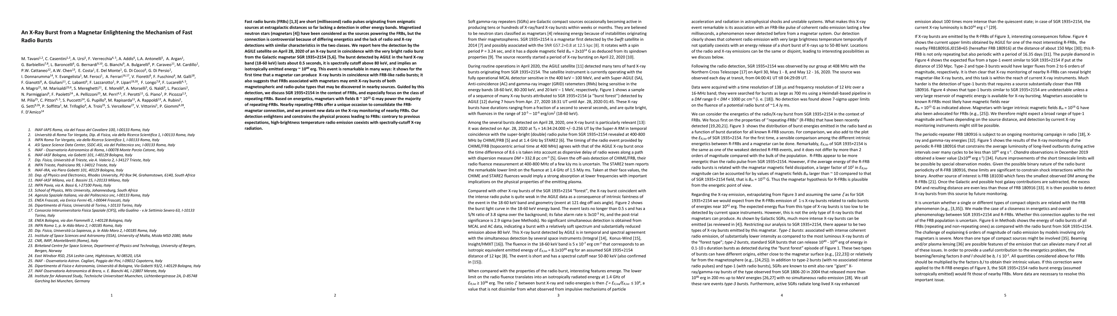 This paper reports the detection of an X-ray burst from the magnetar SGR 1935+2154 coinciding with a bright radio burst, suggesting that magnetars can produce both FRB-like radio and X-ray bursts, thus supporting the magnetar-FRB connection and providing insights into the physical processes generating FRBs.