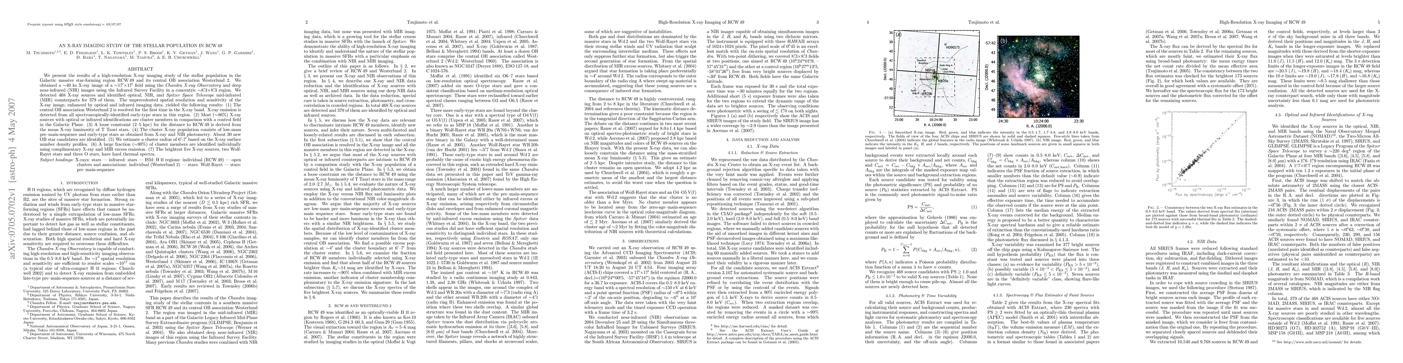 We present the results of a high-resolution X-ray imaging study of the stellar population in the Galactic massive star-forming region RCW49 and its central OB association Westerlund 2. We obtained a 40 ks X-ray image of a 17'x17' field using the Chandra X-ray Observatory and deep NIR images using the Infrared Survey Facility in a concentric 8'3x8'3 region. We detected 468 X-ray sources and identified optical, NIR, and Spitzer Space Telescope MIR counterparts for 379 of them. The unprecedented spatial resolution and sensitivity of the X-ray image, enhanced by optical and infrared imaging data, yielded the following results: (1) The central OB association Westerlund 2 is resolved for the first time in the X-ray band. X-ray emission is detected from all spectroscopically-identified early-type stars in this region. (2) Most (86%) X-ray sources with optical or infrared identifications are cluster members in comparison with a control field in the Galactic Plane. (3) A loose constraint (2--5 kpc) for the distance to RCW49 is derived from the mean X-ray luminosity of T Tauri stars. (4) The cluster X-ray population consists of low-mass pre--main-sequence and early-type stars as obtained from X-ray and NIR photometry. About 30 new OB star candidates are identified. (5) We estimate a cluster radius of 6'--7' based on the X-ray surface number density profiles. (6) A large fraction (90%) of cluster members are identified individually using complimentary X-ray and MIR excess emission. (7) The brightest five X-ray sources, two Wolf-Rayet stars and three O stars, have hard thermal spectra.