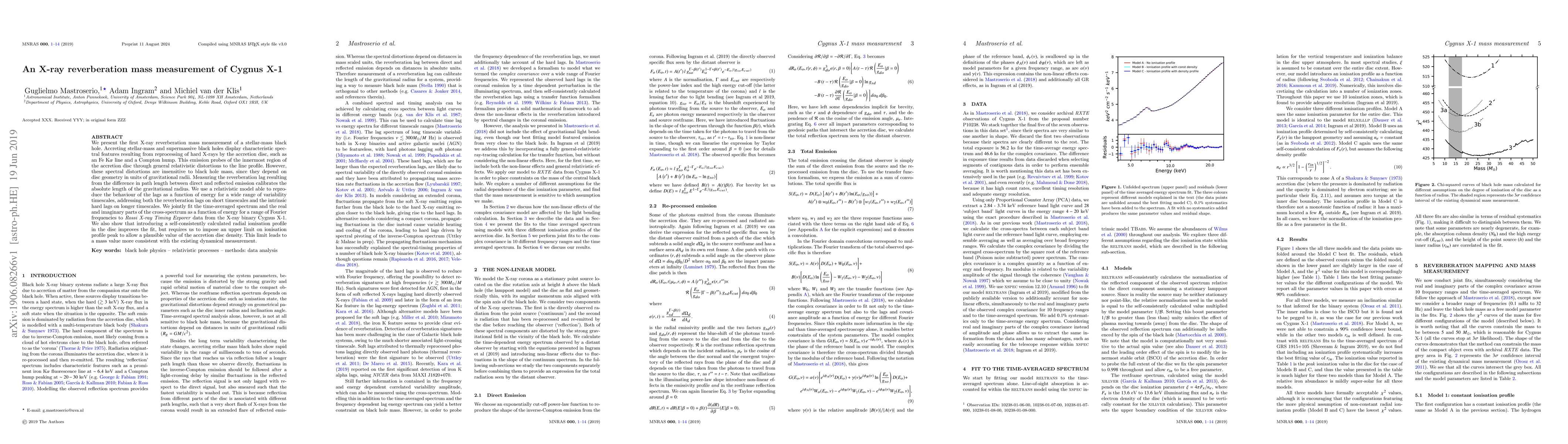 This paper presents the first X-ray reverberation mass measurement of the stellar-mass black hole Cygnus X-1, using the lag between direct and reflected X-ray emissions to calibrate gravitational radius length. The study finds a mass value consistent with existing dynamical measurements, improved by incorporating a self-consistent radial ionization profile in the accretion disc model.