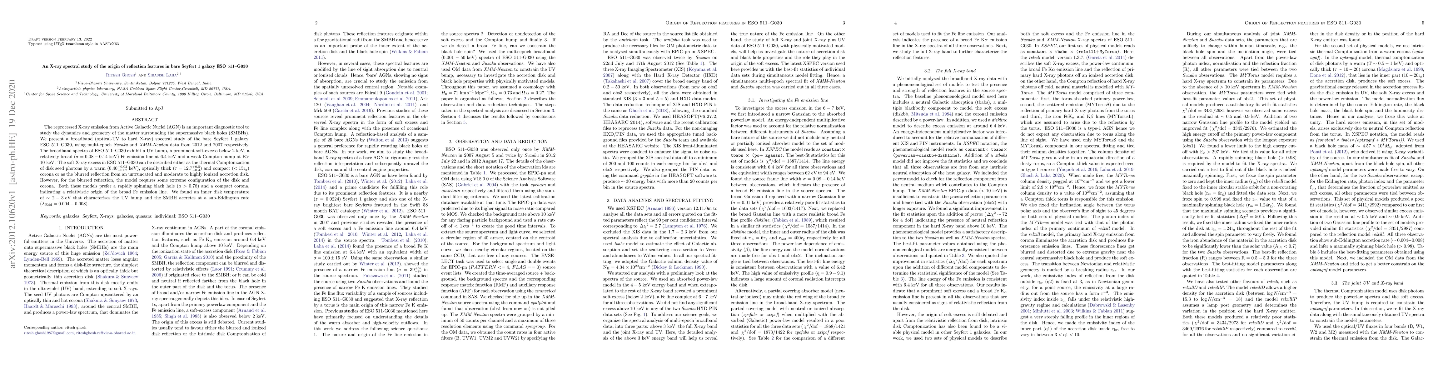 This study uses broadband X-ray spectra from Suzaku and XMM-Newton to analyze the reprocessed X-ray emission in the Seyfert 1 galaxy ESO 511--G030, revealing a rapidly spinning black hole and a sub-Eddington accretion rate. The soft X-ray excess could be due to thermal Comptonization or blurred reflection, suggesting a compact corona and extreme disk configuration.