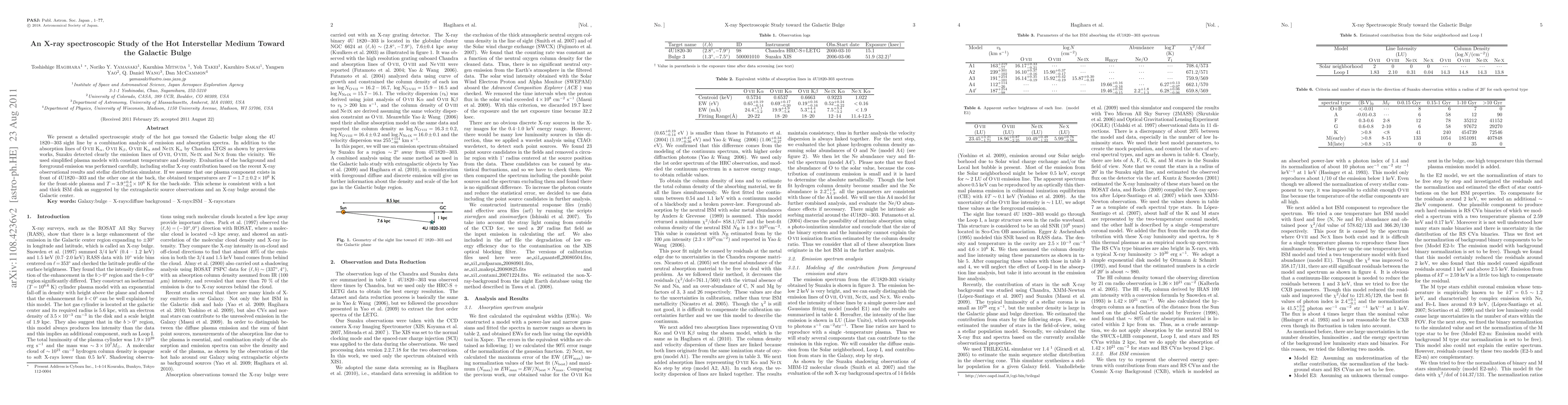 This study uses X-ray spectroscopy to analyze the hot interstellar medium in the Galactic bulge, identifying emission and absorption lines of various ions. The findings suggest two distinct plasma components with temperatures of 1.7 MK and 3.9 MK, supporting the theory of a hot, thick ISM disk.