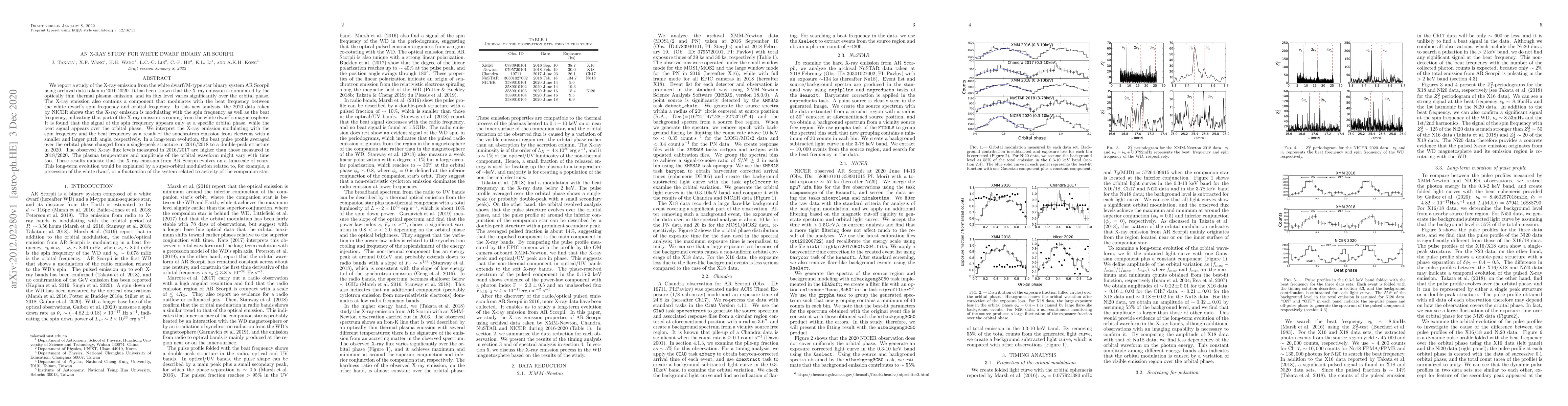 This study analyzes X-ray data from the binary system AR Scorpii, revealing that its emission varies with both the white dwarf's spin and beat frequencies, suggesting synchrotron emission from electrons. The X-ray flux and pulse profile have evolved over years, indicating long-term changes likely due to super-orbital modulation.
