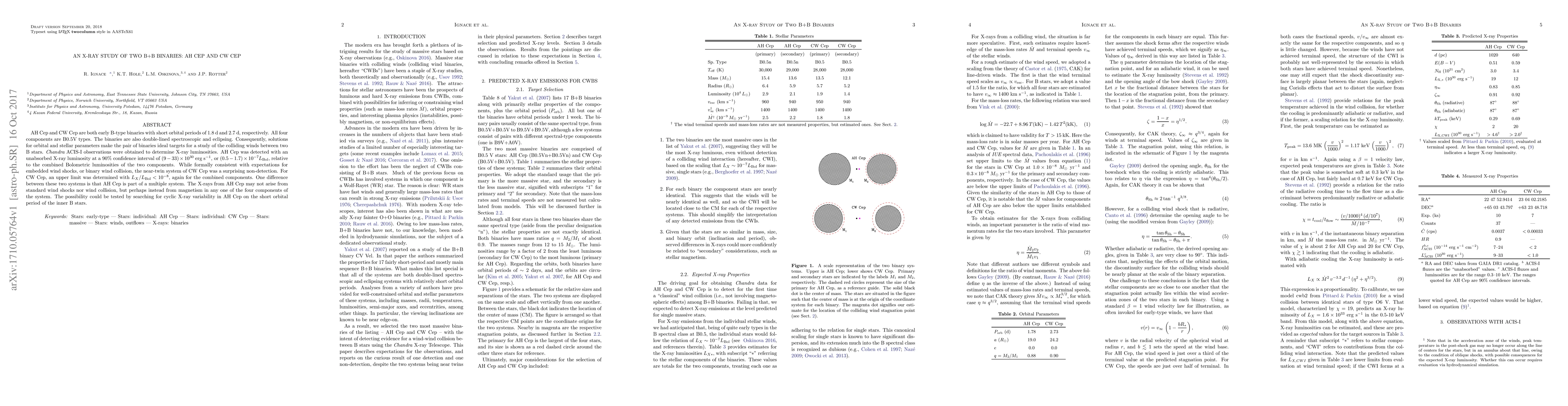 AH Cep and CW Cep are both early B-type binaries with short orbital periods of 1.8~d and 2.7~d, respectively. All four components are B0.5V types. The binaries are also double-lined spectroscopic and eclipsing. Consequently, solutions for orbital and stellar parameters make the pair of binaries ideal targets for a study of the colliding winds between two B~stars. {\em Chandra} ACIS-I observations were obtained to determine X-ray luminosities. AH~Cep was detected with an unabsorbed X-ray luminosity at a 90\% confidence interval of $(9-33)\times 10^{30}$ erg s$^{-1}$, or $(0.5-1.7)\times 10^{-7} L_{\rm Bol}$, relative to the combined Bolometric luminosities of the two components. While formally consistent with expectations for embedded wind shocks, or binary wind collision, the near-twin system of CW~Cep was a surprising non-detection. For CW~Cep, an upper limit was determined with $L_X/L_{\rm Bol} < 10^{-8}$, again for the combined components. One difference between these two systems is that AH~Cep is part of a multiple system. The X-rays from AH~Cep may not arise from standard wind shocks nor wind collision, but perhaps instead from magnetism in any one of the four components of the system. The possibility could be tested by searching for cyclic X-ray variability in AH~Cep on the short orbital period of the inner B~stars.