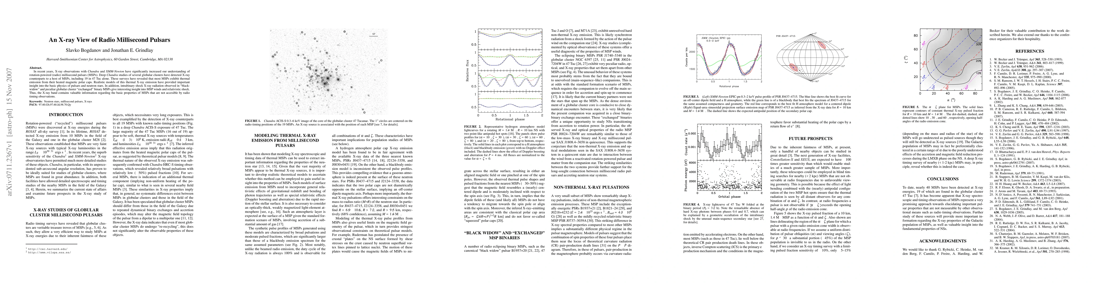 In recent years, X-ray observations with Chandra and XMM-Newton have significantly increased our understanding of rotation-powered (radio) millisecond pulsars (MSPs). Deep Chandra studies of several globular clusters have detected X-ray counterparts to a host of MSPs, including 19 in 47 Tuc alone. These surveys have revealed that most MSPs exhibit thermal emission from their heated magnetic polar caps. Realistic models of this thermal X-ray emission have provided important insight into the basic physics of pulsars and neutron stars. In addition, intrabinary shock X-ray radiation observed in ``black-widow'' and peculiar globular cluster ``exchanged'' binary MSPs give interesting insight into MSP winds and relativistic shock. Thus, the X-ray band contains valuable information regarding the basic properties of MSPs that are not accesible by radio timing observations.