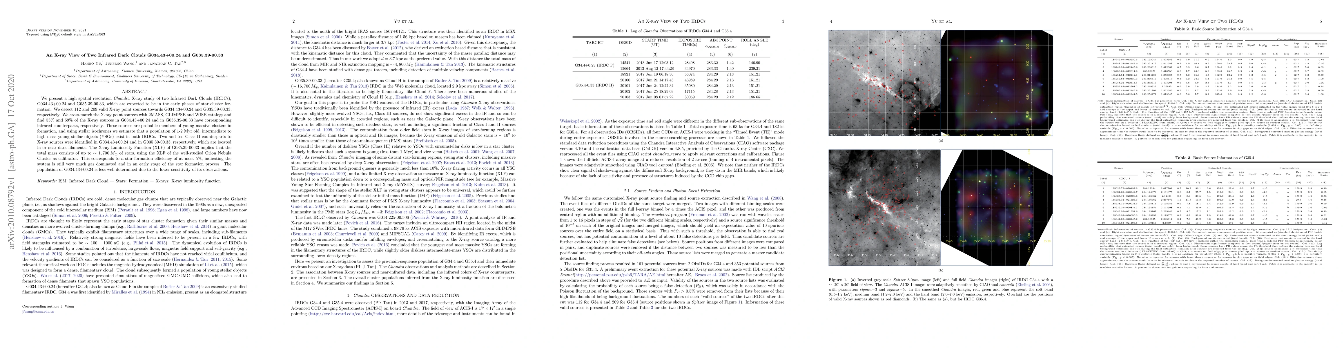 Two Infrared Dark Clouds were studied using Chandra X-ray observations to detect young massive stars in formation, with estimates suggesting 1-2 Myr old stellar objects exist in both clouds.