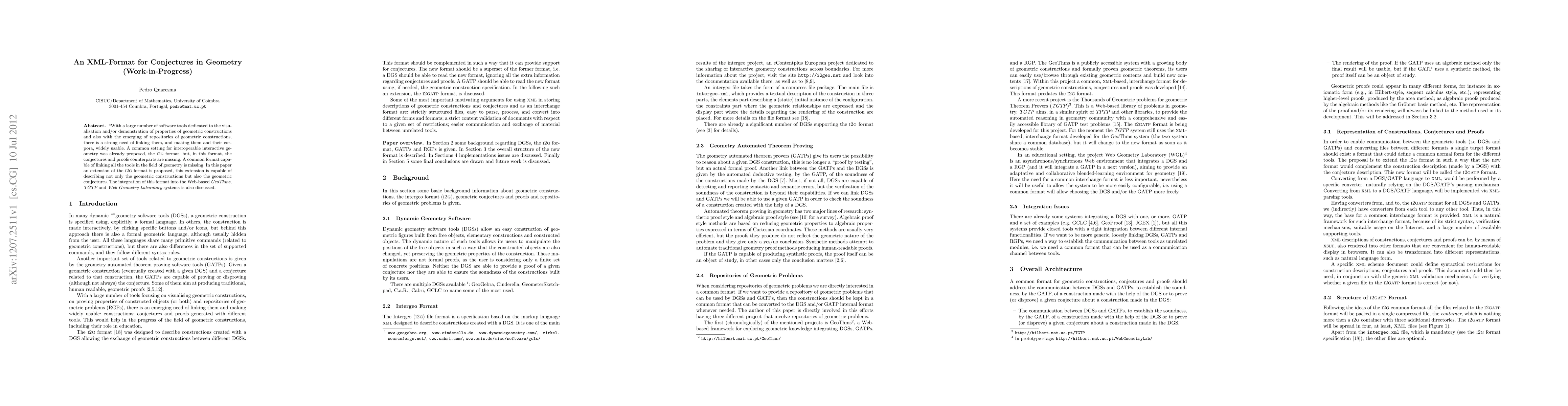 Researchers propose an extended XML format to link geometric constructions and conjectures, enhancing interoperability among geometry tools and systems.