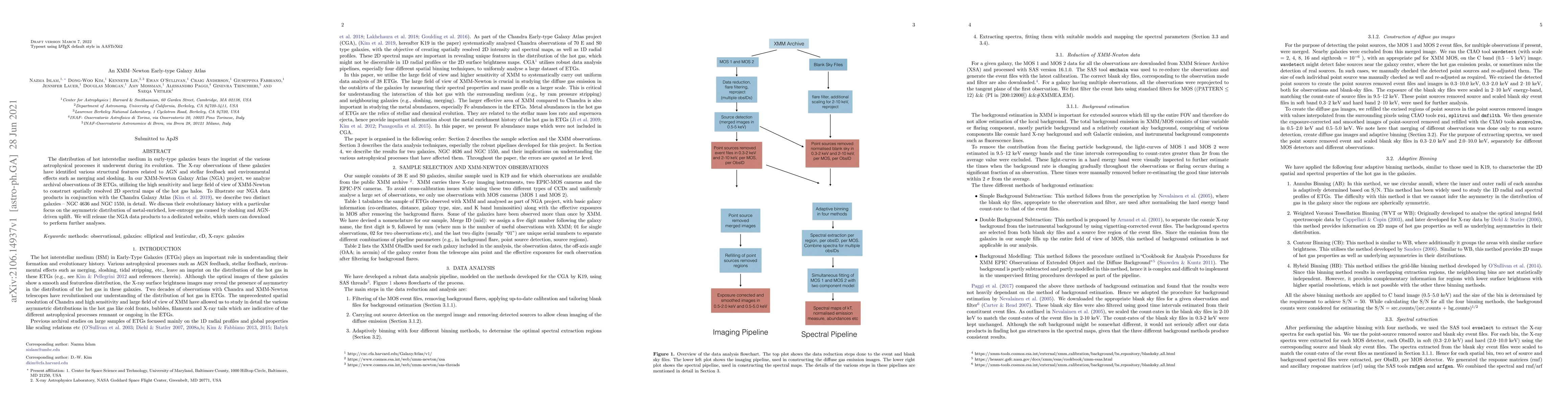 The distribution of hot interstellar medium in early-type galaxies bears the imprint of the various astrophysical processes it underwent during its evolution. The X-ray observations of these galaxies have identified various structural features related to AGN and stellar feedback and environmental effects such as merging and sloshing. In our XMM-Newton Galaxy Atlas (NGA) project, we analyze archival observations of 38 ETGs, utilizing the high sensitivity and large field of view of XMM-Newton to construct spatially resolved 2D spectral maps of the hot gas halos. To illustrate our NGA data products in conjunction with the Chandra Galaxy Atlas (Kim et al. 2019), we describe two distinct galaxies - NGC 4636 and NGC 1550, in detail. We discuss their evolutionary history with a particular focus on the asymmetric distribution of metal-enriched, low-entropy gas caused by sloshing and AGN- driven uplift. We will release the NGA data products to a dedicated website, which users can download to perform further analyses.
