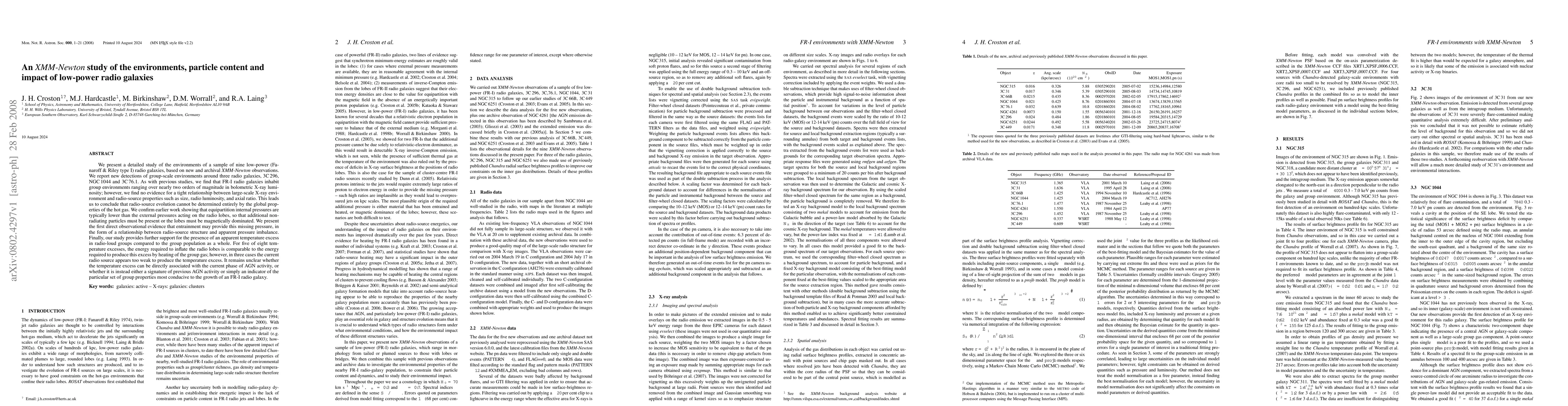 We present a detailed study of the environments of a sample of nine low-power radio galaxies, based on new and archival XMM-Newton observations. We report new detections of group-scale environments around three radio galaxies, 3C 296, NGC 1044 and 3C 76.1. As with previous studies, we find that FR-I radio galaxies inhabit group environments ranging over nearly two orders of magnitude in bolometric X-ray luminosity, but find no evidence for a tight relationship between large-scale X-ray environment and radio-source properties such as size, radio luminosity, and axial ratio. We confirm earlier work showing that equipartition internal pressures are typically lower than the external pressures acting on the radio lobes, so that additional non-radiating particles must be present or the lobes must be magnetically dominated. We present the first direct observational evidence that entrainment may provide this missing pressure, in the form of a relationship between radio-source structure and apparent pressure imbalance. Finally, our study provides further support for the presence of an apparent temperature excess in radio-loud groups compared to the group population as a whole. For five of eight temperature excesses, the energy required to inflate the radio lobes is comparable to the energy required to produce this excess by heating of the group gas; however, in three cases the current radio source appears too weak to produce the temperature excess. It remains unclear whether the temperature excess can be directly associated with the current phase of AGN activity, or whether it is instead either a signature of previous AGN activity or simply an indicator of the particular set of group properties most conducive to the growth of an FR-I radio galaxy.