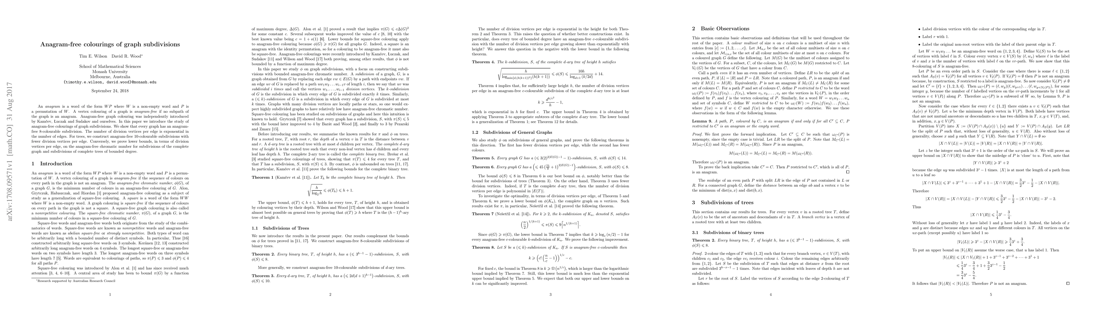 The paper presents a novel framework for analyzing anagram-free colorings in graph subdivisions, combining theoretical results with constructive methods for trees and bounds for complete graphs and trees of bounded degree.
