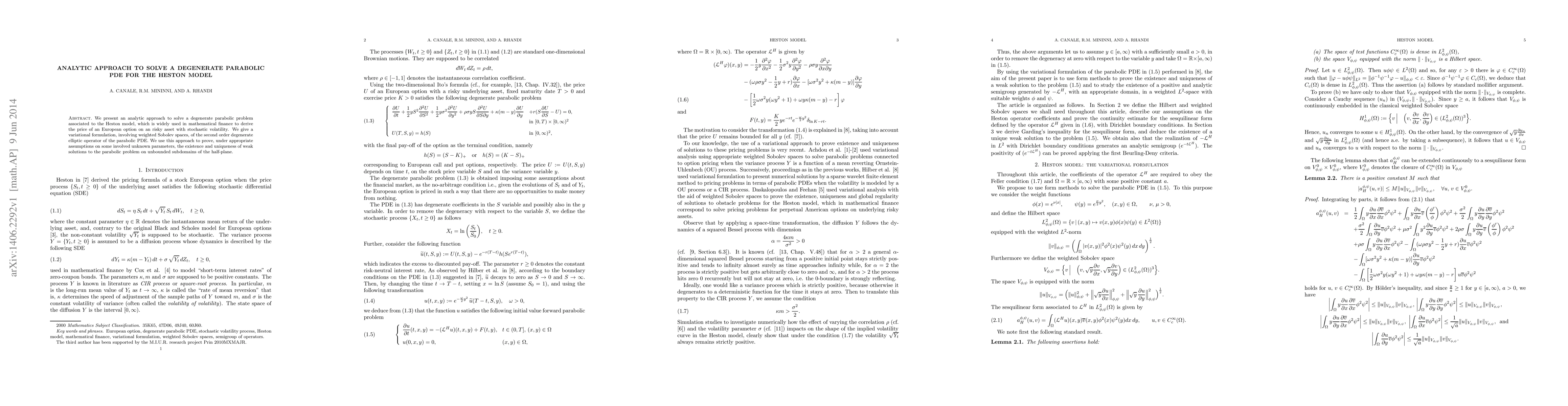 This paper presents an analytic approach to solve a degenerate parabolic problem for the Heston model, proving the existence and uniqueness of weak solutions under certain assumptions.