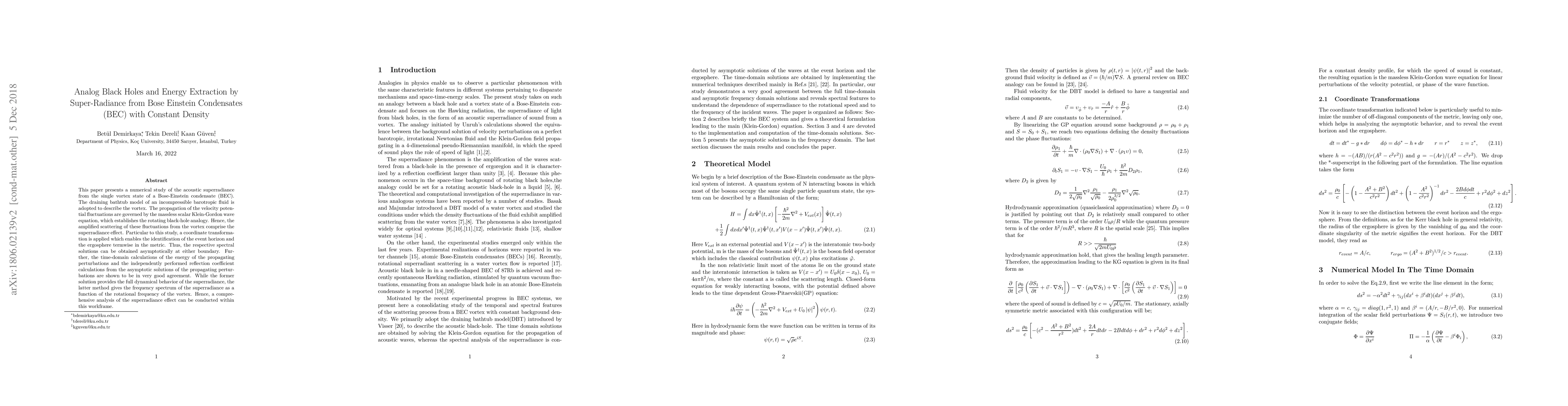 Researchers studied acoustic superradiance from a rotating Bose-Einstein condensate vortex, finding good agreement between time-domain and frequency-based calculations of the phenomenon.