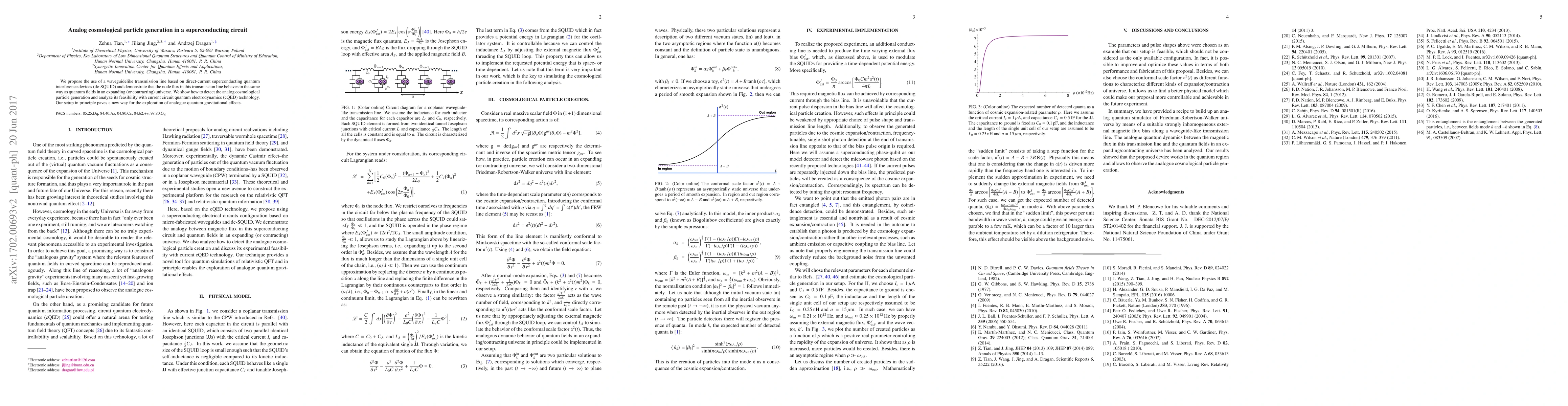 The paper presents a novel approach to simulate cosmological particle generation using superconducting circuits, providing a platform for studying analogue quantum gravitational effects.
