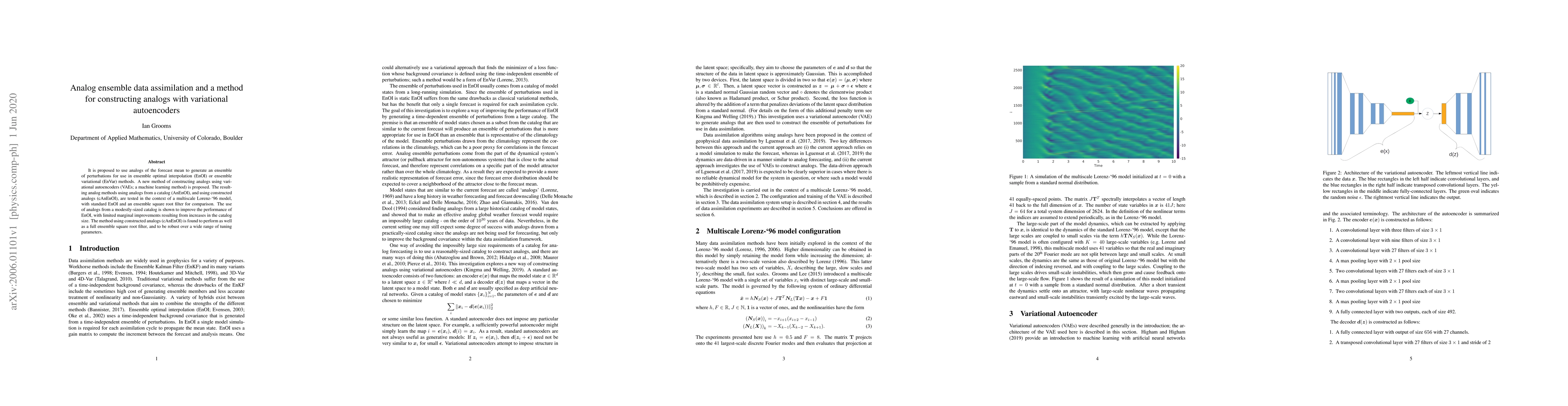 This paper proposes using forecast mean analogs to create ensemble perturbations for ensemble optimal interpolation and ensemble variational methods. It introduces a novel method for constructing these analogs using variational autoencoders, demonstrating improved performance in a multiscale Lorenz-`96 model compared to standard methods, with the constructed analog method showing robustness and comparable performance to a full ensemble square root filter.
