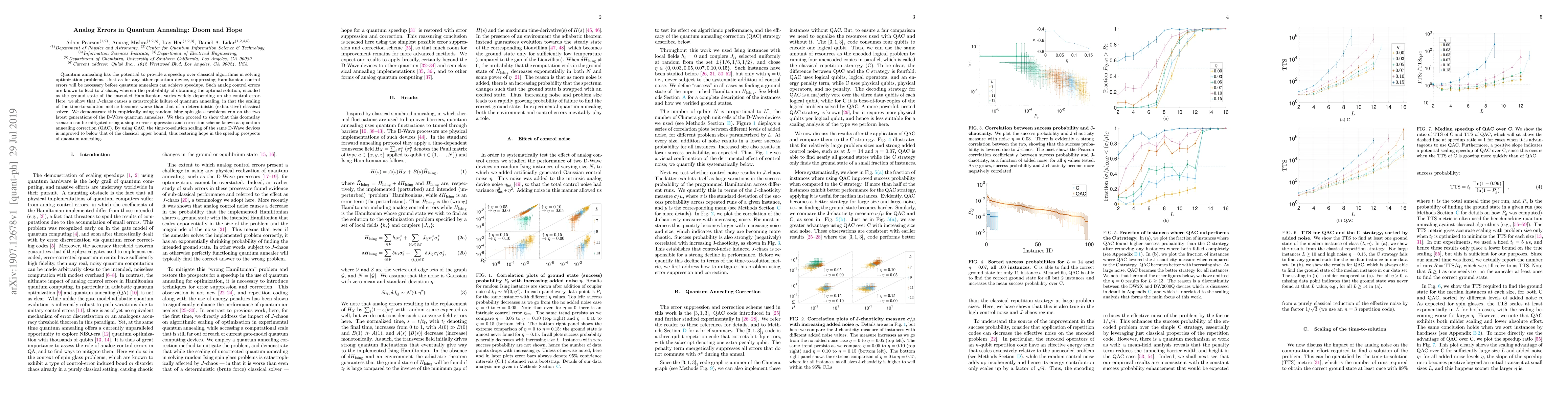 This paper investigates the impact of analog control errors in quantum annealing, showing that they lead to $J$-chaos and worsen the time-to-solution metric compared to classical solvers. It proposes quantum annealing correction (QAC) as a method to mitigate these errors, thereby restoring the potential for quantum annealing speedups.