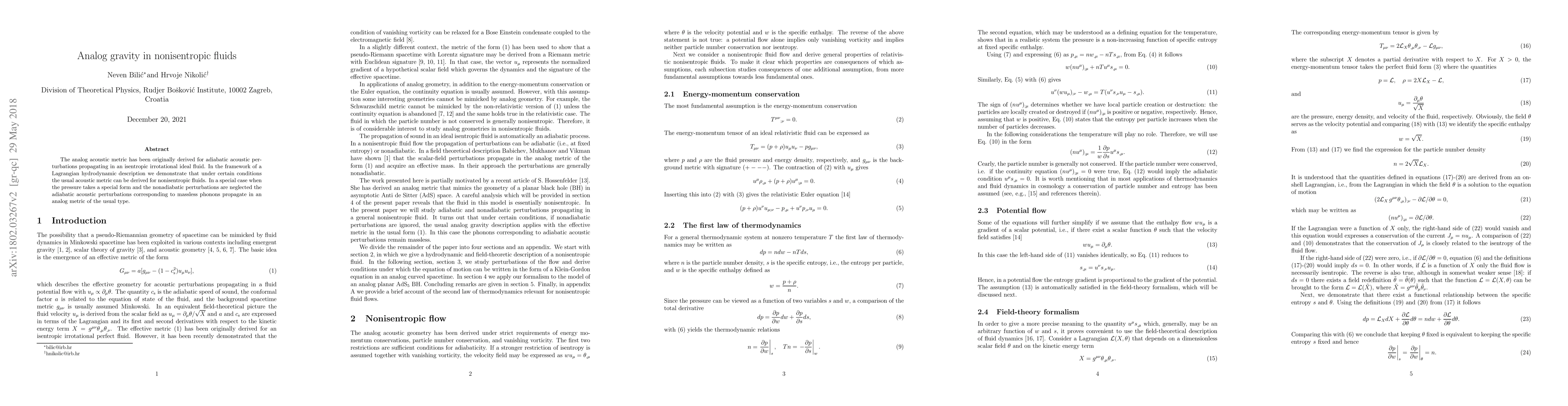 This research shows that an acoustic metric, originally tied to adiabatic sound waves in isentropic fluids, can also describe nonisentropic fluids under specific conditions. It demonstrates that even with nonadiabatic perturbations, certain circumstances allow for massless phonon-like sound wave propagation in an analog metric similar to the conventional one.