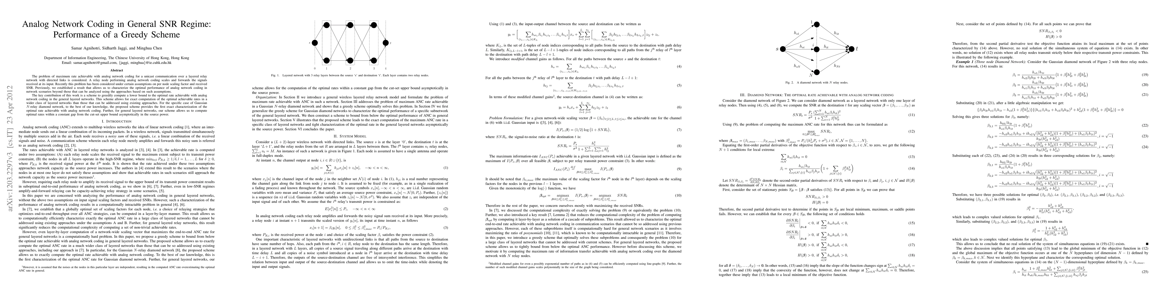 This paper proposes a greedy scheme to compute a lower bound for the optimal rate achievable with analog network coding in general layered relay networks, providing an exact characterization for Gaussian N-relay diamond networks and optimal rates within a constant gap for broader networks.