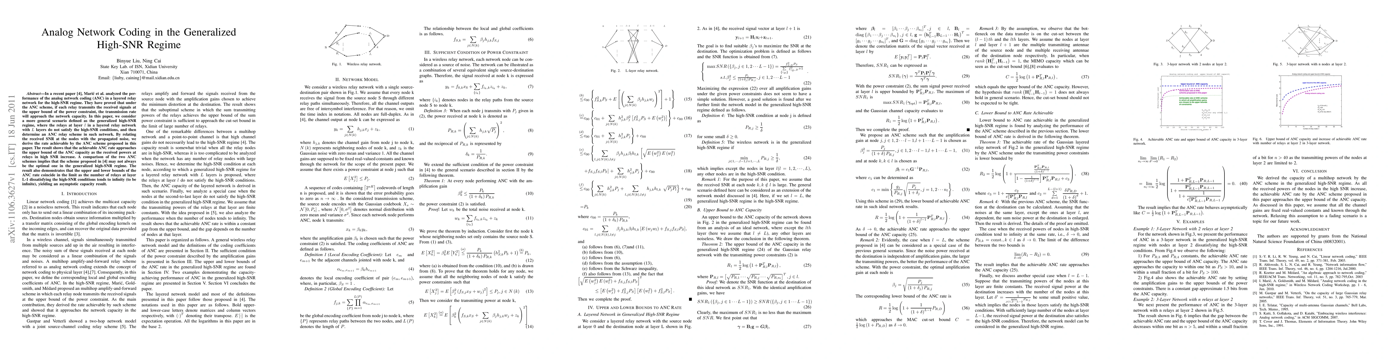 This paper extends the analysis of analog network coding (ANC) to a generalized high-SNR regime, where not all relays meet high-SNR conditions. It proposes an ANC relay scheme and shows that its achievable rate approaches the network capacity as SNR increases, indicating that the previously optimal ANC scheme may not always be optimal in this generalized scenario.