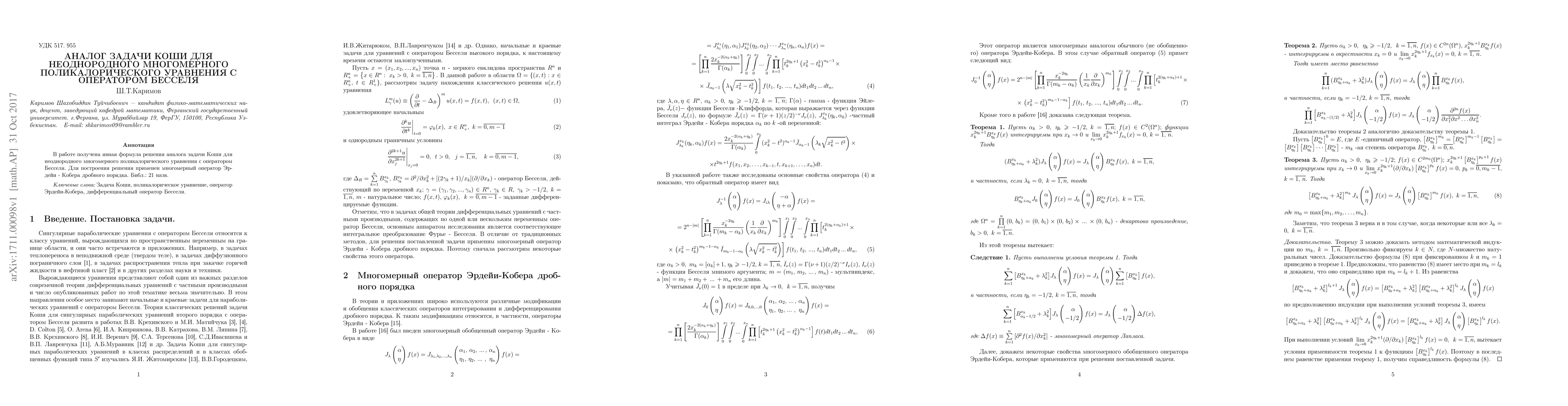 Summary: This paper presents an explicit solution formula for the inhomogeneous many-dimensional polycaloric equation with a Bessel operator, utilizing the many-dimensional Erdelyi-Kober operator of fractional order for construction.