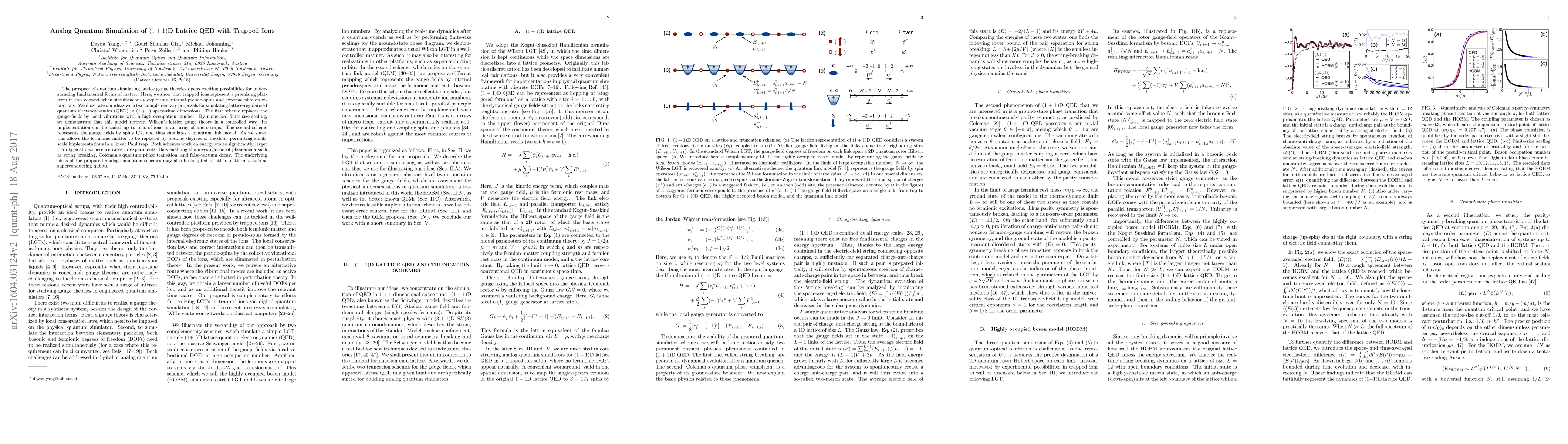 This paper proposes two analog quantum simulation methods for (1+1)D lattice QED using trapped ions, demonstrating scalable implementations and potential for studying phenomena like string breaking and quantum phase transitions. The first method uses high-occupation phonon vibrations to simulate gauge fields, while the second employs a quantum link model with spins 1/2.