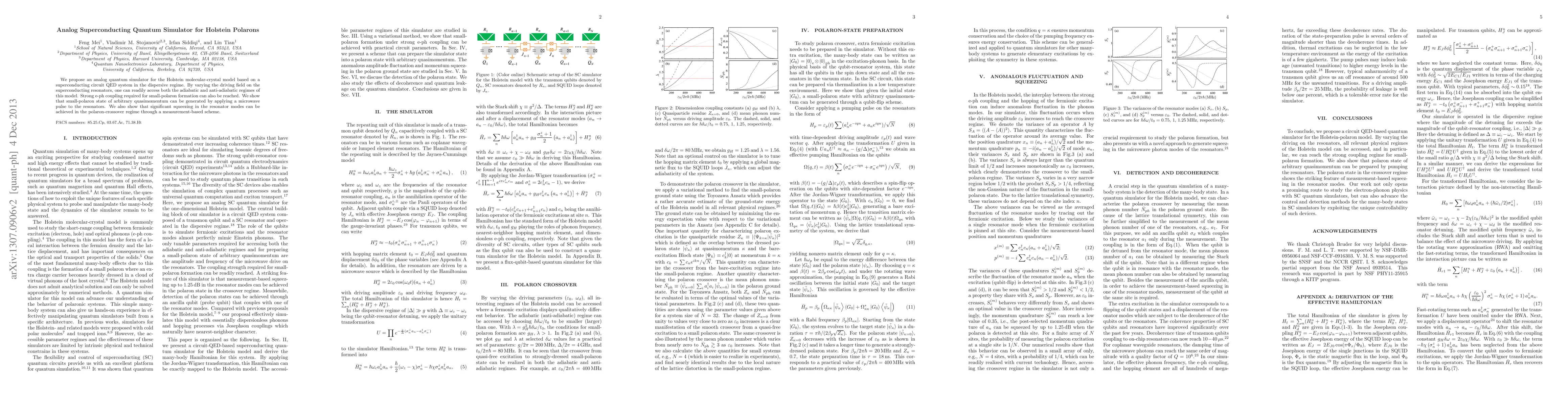 This paper proposes a superconducting quantum simulator to study Holstein polarons, demonstrating ability to generate small-polaron states with arbitrary quasimomentum and achieving significant squeezing in resonator modes.