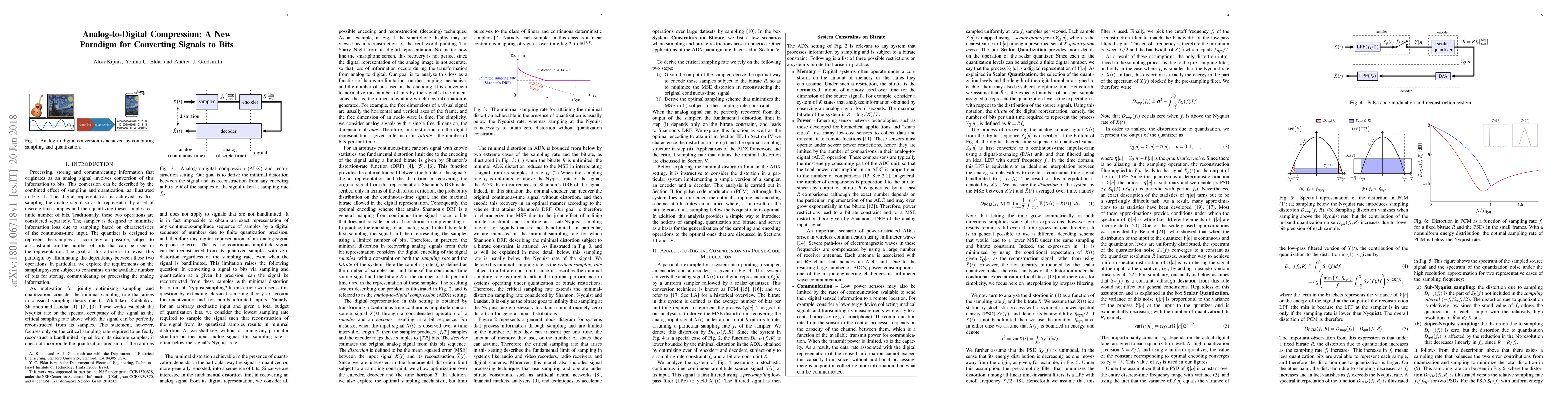 Processing, storing and communicating information that originates as an analog signal involves conversion of this information to bits. This conversion can be described by the combined effect of sampling and quantization, as illustrated in Fig. 1. The digital representation is achieved by first sampling the analog signal so as to represent it by a set of discrete-time samples and then quantizing these samples to a finite number of bits. Traditionally, these two operations are considered separately. The sampler is designed to minimize information loss due to sampling based on characteristics of the continuous-time input. The quantizer is designed to represent the samples as accurately as possible, subject to a constraint on the number of bits that can be used in the representation. The goal of this article is to revisit this paradigm by illuminating the dependency between these two operations. In particular, we explore the requirements on the sampling system subject to constraints on the available number of bits for storing, communicating or processing the analog information.