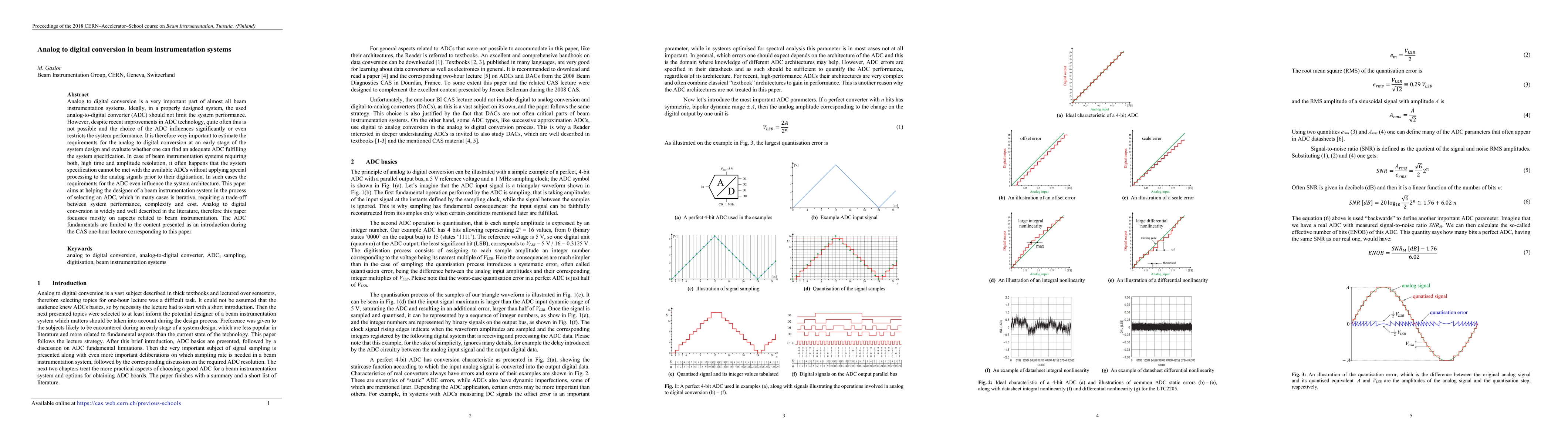 This paper discusses the critical role of analog to digital conversion (ADC) in beam instrumentation systems, emphasizing the importance of selecting an appropriate ADC to meet system specifications for high time and amplitude resolution. It highlights the iterative process of ADC selection, balancing performance, complexity, and cost.