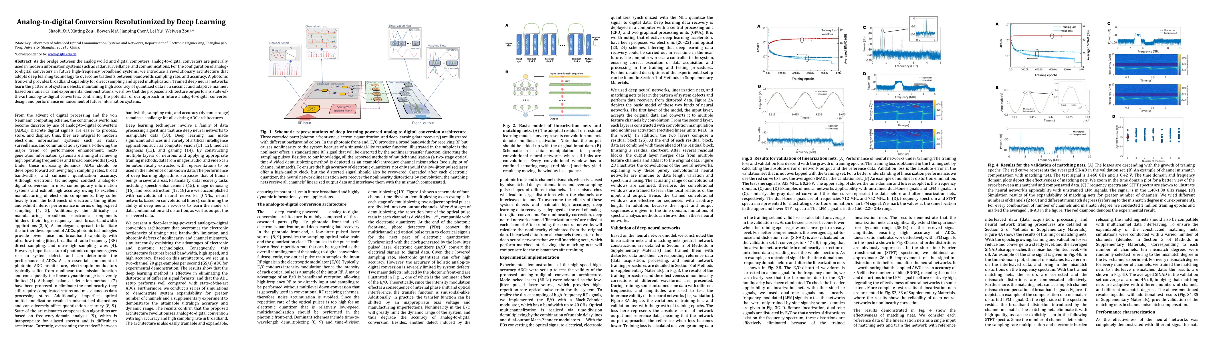 This paper proposes a deep learning-based architecture for analog-to-digital converters that leverages photonic front-ends and trained neural networks to enhance performance, achieving superior results compared to traditional methods in terms of bandwidth, sampling rate, and accuracy. The approach promises significant improvements for future high-frequency broadband systems.