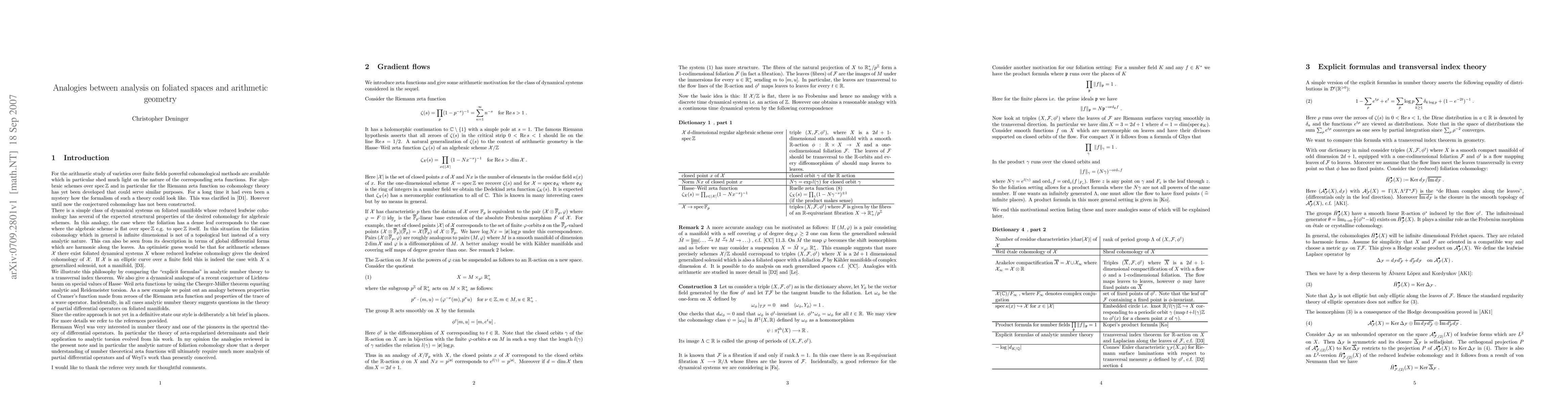 This paper reviews analogies between analytic number theory and analysis on foliated spaces, highlighting connections between explicit formulas, Lichtenbaum conjectures, and results on the zeroes of the Riemann zeta function. It introduces new ideas relating to Chazarain's work on the trace of a wave operator.