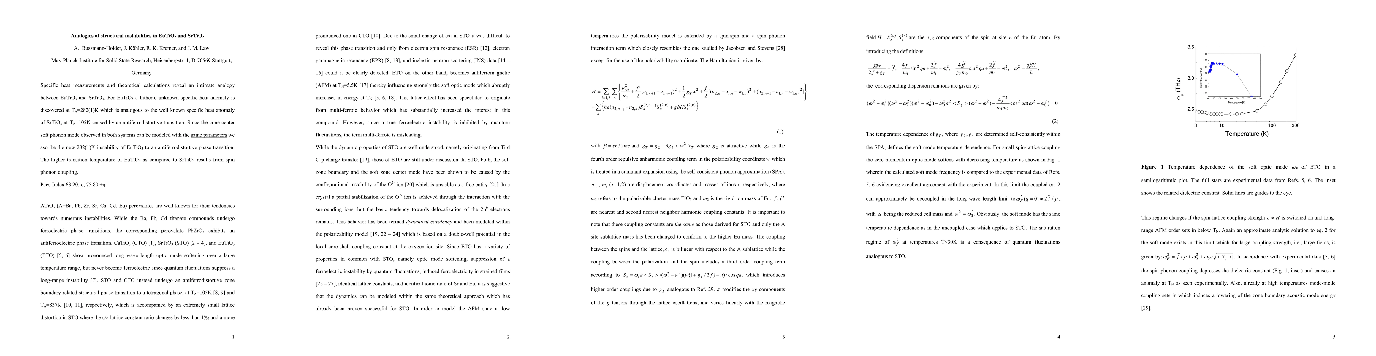 This study discovers a previously unknown specific heat anomaly in EuTiO3 at TA=282(1)K, analogous to the anomaly in SrTiO3 at TA=105K due to an antiferrodistortive transition. Both materials share a zone center soft phonon mode, indicating a similar structural instability driven by spin-phonon coupling.