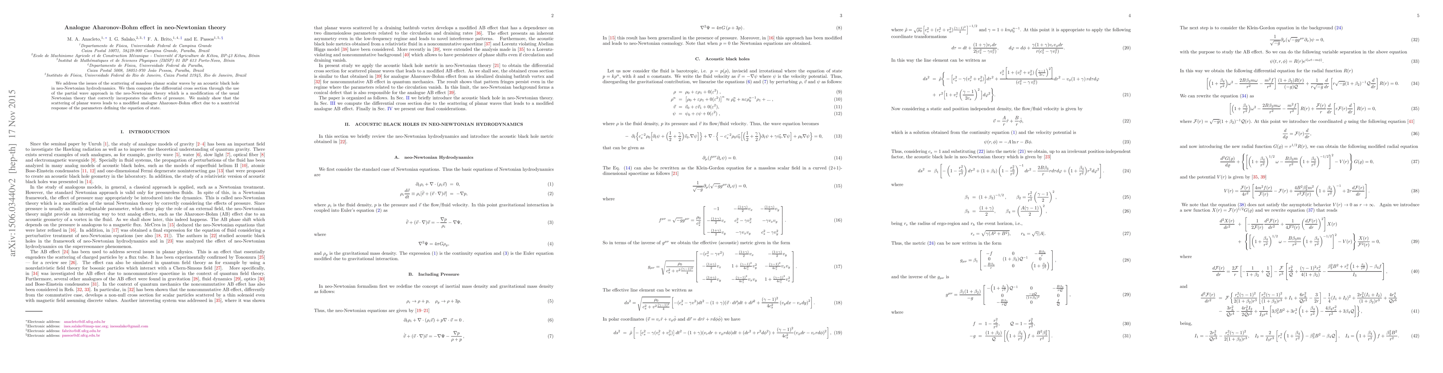 This paper investigates the scattering of massless planar scalar waves by an acoustic black hole in neo-Newtonian hydrodynamics, revealing a modified analogue Aharonov-Bohm effect resulting from the nontrivial response of the equation of state parameters.