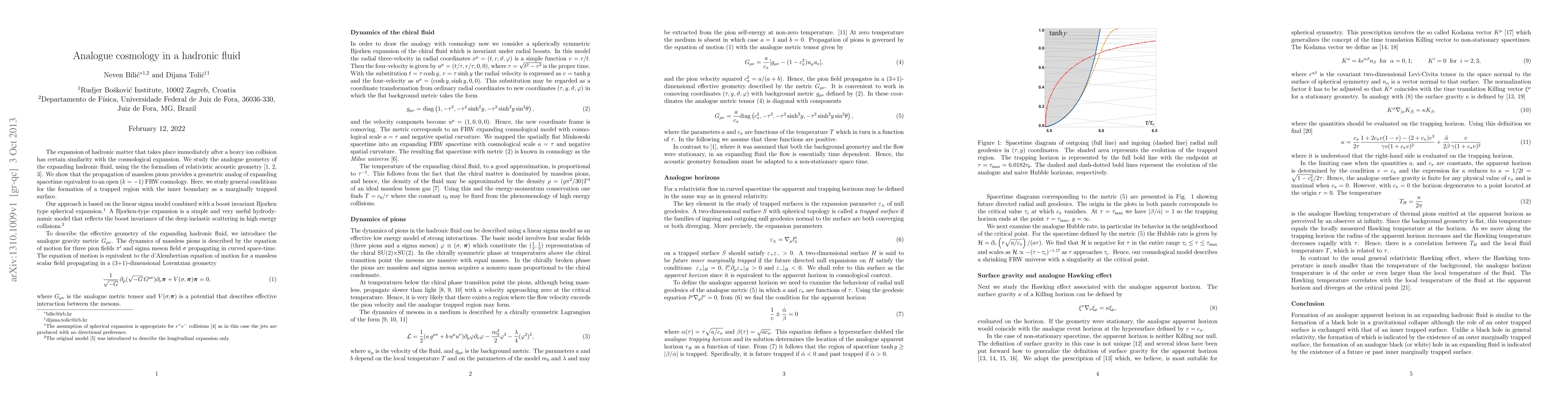 This research is significant as it establishes an analogue cosmology within a hadronic fluid, providing insights into the behavior of matter under extreme conditions similar to those present in the early universe, potentially aiding in the understanding of cosmological phenomena.