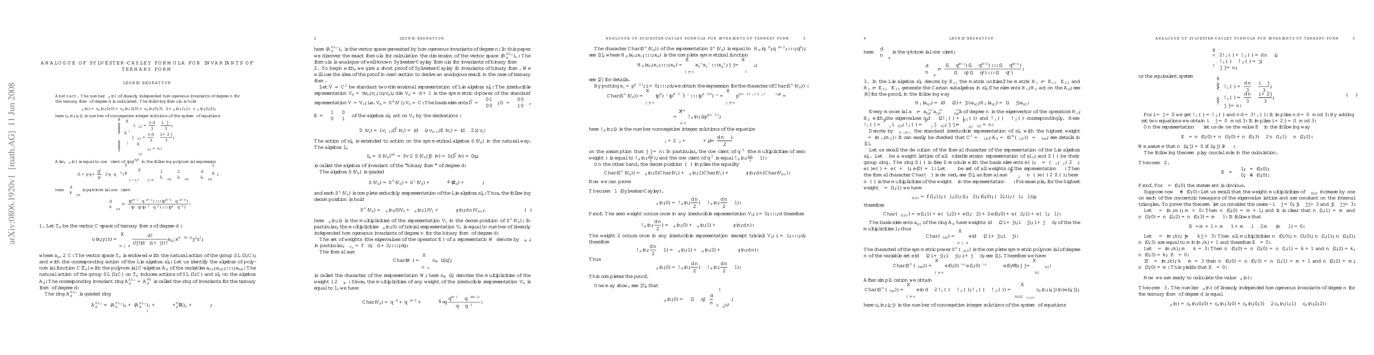 The number $\nu_d(n)$ of linearly independed homogeneous invariants of degree $n$ for the ternary form of degree $d$ is calculated.