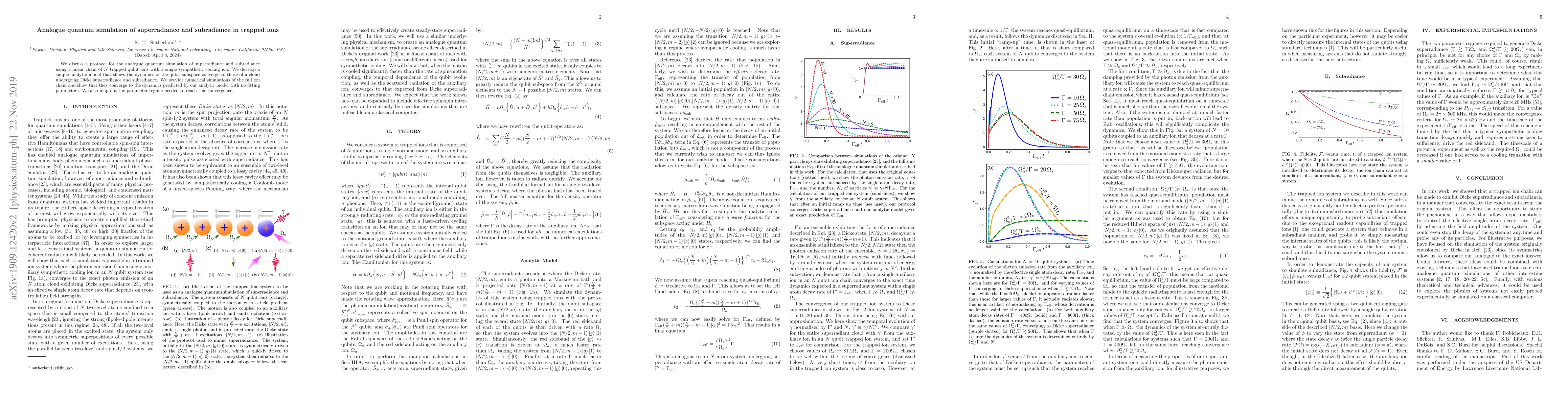 This paper proposes an analogue quantum simulation of superradiance and subradiance using trapped-ion qubits, showing that a linear chain of ions can mimic the dynamics of a Dicke cloud. Numerical simulations confirm the convergence of the ion chain dynamics to the predicted analytic model.