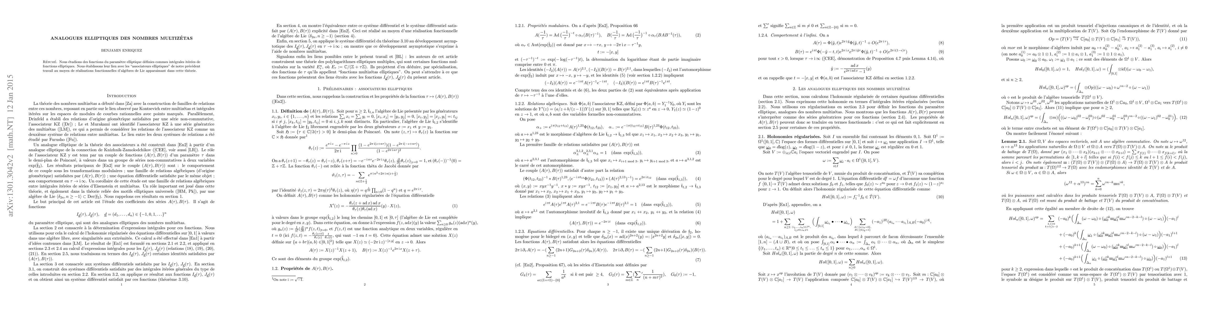 We study functions of an elliptic parameter, which are defined as iterated integrals of elliptic functions. We establish their relation with the "elliptic associators" of our previous work, by means of a functional realization of Lie algebras appearing in that work.