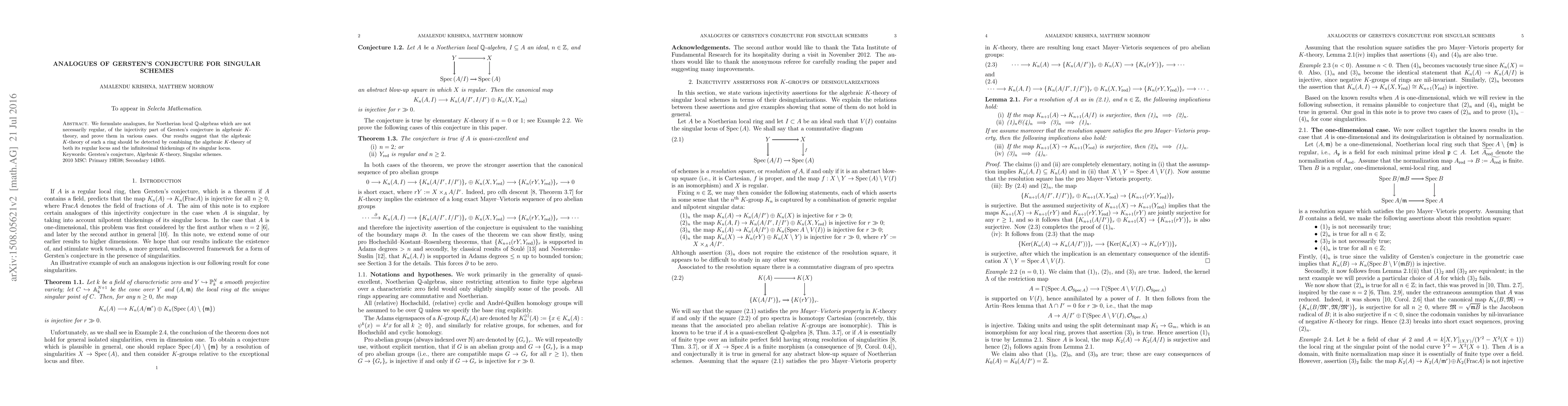 We formulate analogues, for Noetherian local $\mathbb Q$-algebras which are not necessarily regular, of the injectivity part of Gersten's conjecture in algebraic $K$-theory, and prove them in various cases. Our results suggest that the algebraic $K$-theory of such a ring should be detected by combining the algebraic $K$-theory of both its regular locus and the infinitesimal thickenings of its singular locus.