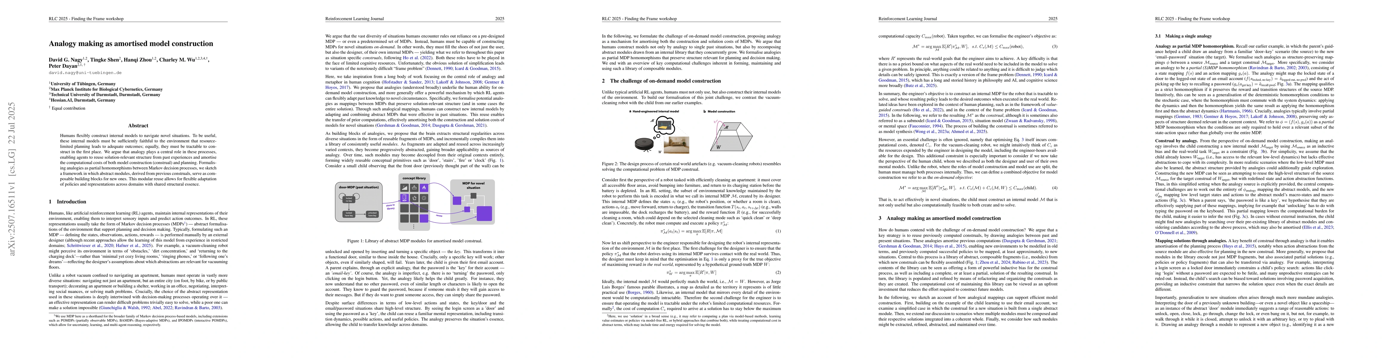 Humans flexibly construct internal models to navigate novel situations. To be useful, these internal models must be sufficiently faithful to the environment that resource-limited planning leads to adequate outcomes; equally, they must be tractable to construct in the first place. We argue that analogy plays a central role in these processes, enabling agents to reuse solution-relevant structure from past experiences and amortise the computational costs of both model construction (construal) and planning. Formalising analogies as partial homomorphisms between Markov decision processes, we sketch a framework in which abstract modules, derived from previous construals, serve as composable building blocks for new ones. This modular reuse allows for flexible adaptation of policies and representations across domains with shared structural essence.