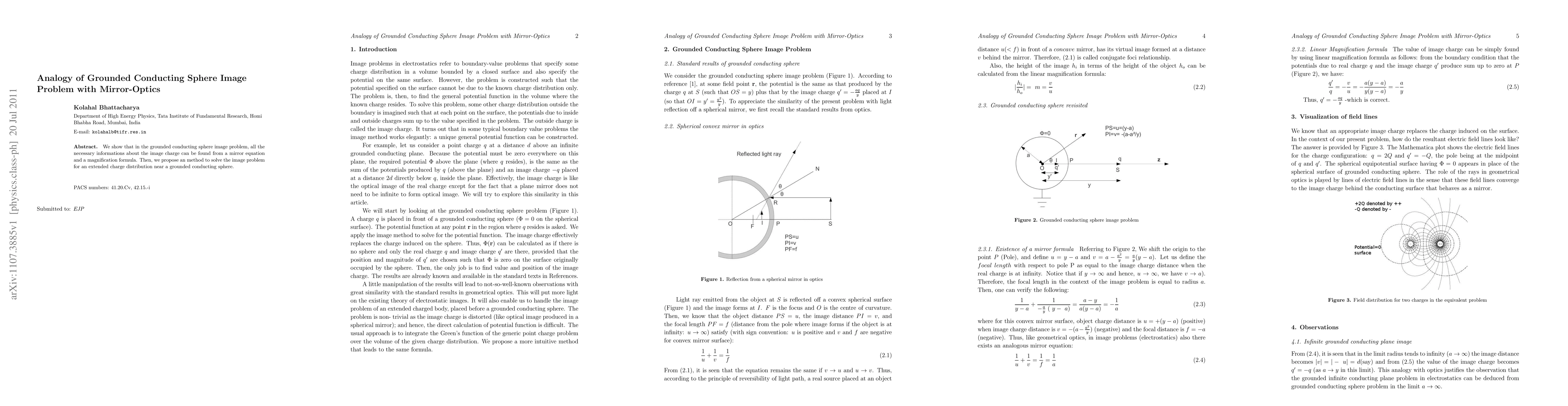 Researchers show that a mirror optics approach can solve the image problem for a grounded conducting sphere, offering a new method to find image charges.