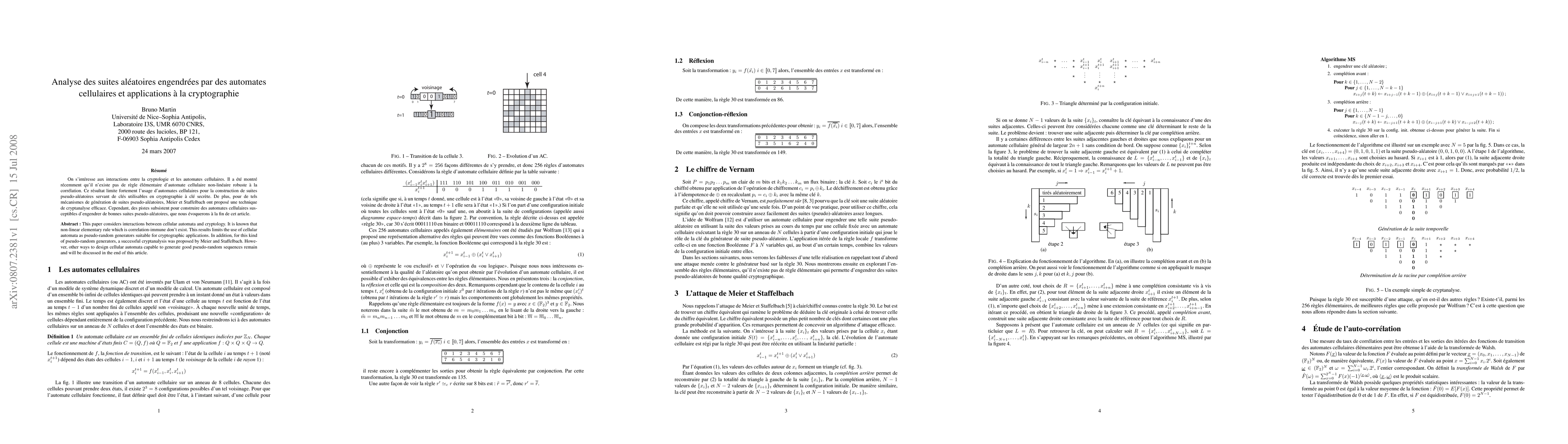 This paper considers interactions between cellular automata and cryptology. It is known that non-linear elementary rule which is correlation-immune don't exist. This results limits the use of cellular automata as pseudo-random generators suitable for cryptographic applications. In addition, for this kind of pseudo-random generators, a successful cryptanalysis was proposed by Meier and Staffelbach. However, other ways to design cellular automata capable to generate good pseudo-random sequences remain and will be discussed in the end of this article.
