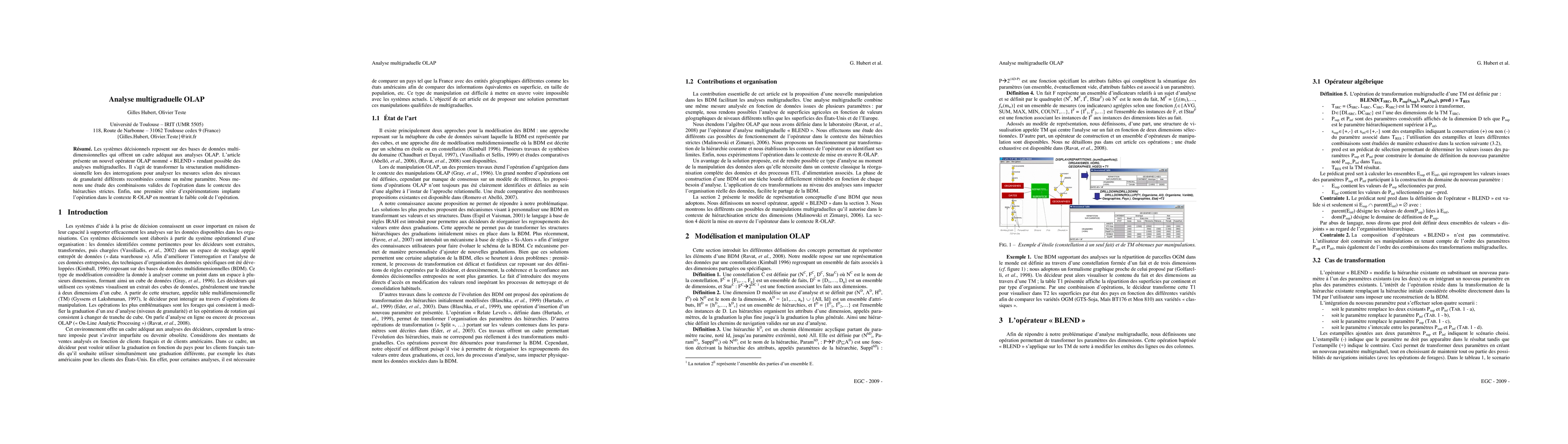 The paper introduces a new OLAP operator "BLEND" for multigradual analyses, enabling the transformation of multidimensional structures to analyze measures across various granularity levels. Initial experiments in an R-OLAP framework demonstrate the slight computational cost of this operation.