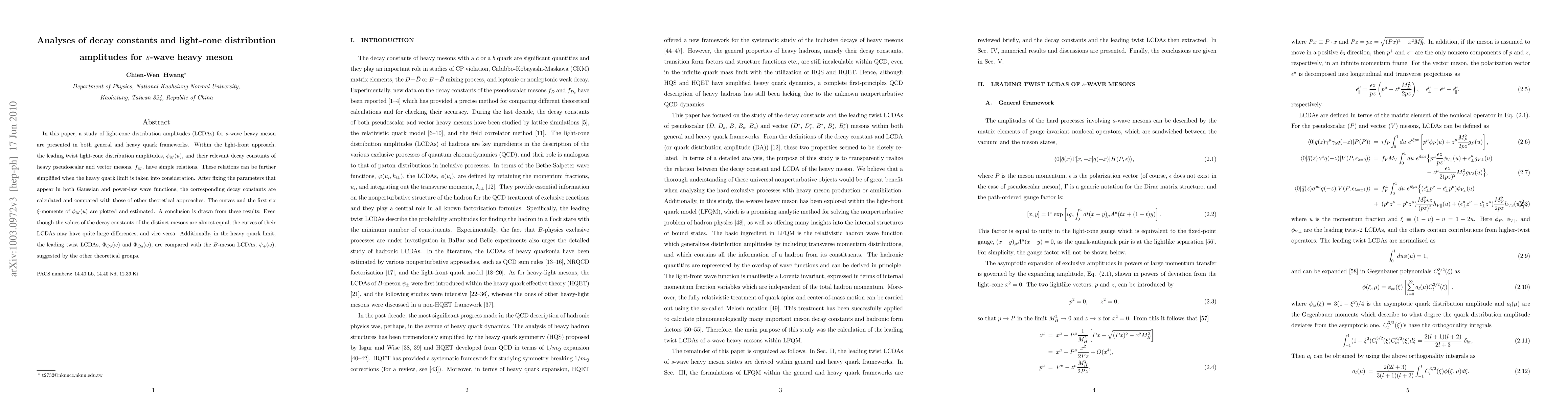 This paper investigates light-cone distribution amplitudes for $s$-wave heavy mesons using both general and heavy quark frameworks, finding that decay constants and distribution amplitudes exhibit distinct behaviors despite similar values. The study also compares leading twist LCDAs in the heavy quark limit with $B$-meson LCDAs from other theories.